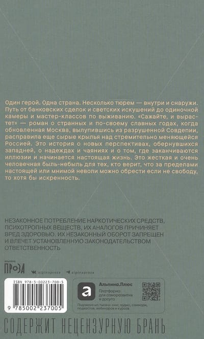 Один герой. Одна страна. Несколько тюрем — внутри и снаружи. Путь от банковских сделок и светских искушений до одиночной камеры и мастер-классов по выживанию. «Сажайте, и вырастет» — роман о странных и по-своему славных годах, когда обновленная Москва, вылупившись из разрушенной Совдепии, расправила еще сырые крылья над стремительно меняющейся Россией. Это история о новых перспективах, обернувшихся западней, о надеждах и чаяниях и о том, где заканчиваются иллюзии и начинается настоящая жизнь. Это жесткая и очень человечная быль-небыль для тех, кто верит, что за пределами настоящей или мнимой неволи можно обрести если не свободу, то хотя бы искренность.
