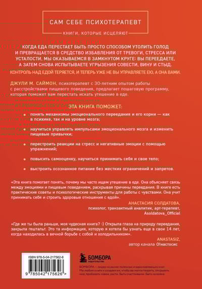Джули М. Саймон, психотерапевт с 30-летним опытом работы с людьми, страдающими расстройствами пищевого поведения, предлагает пошаговую программу, которая поможет вам перестать искать утешение в еде и вернуть себе внутренний баланс.