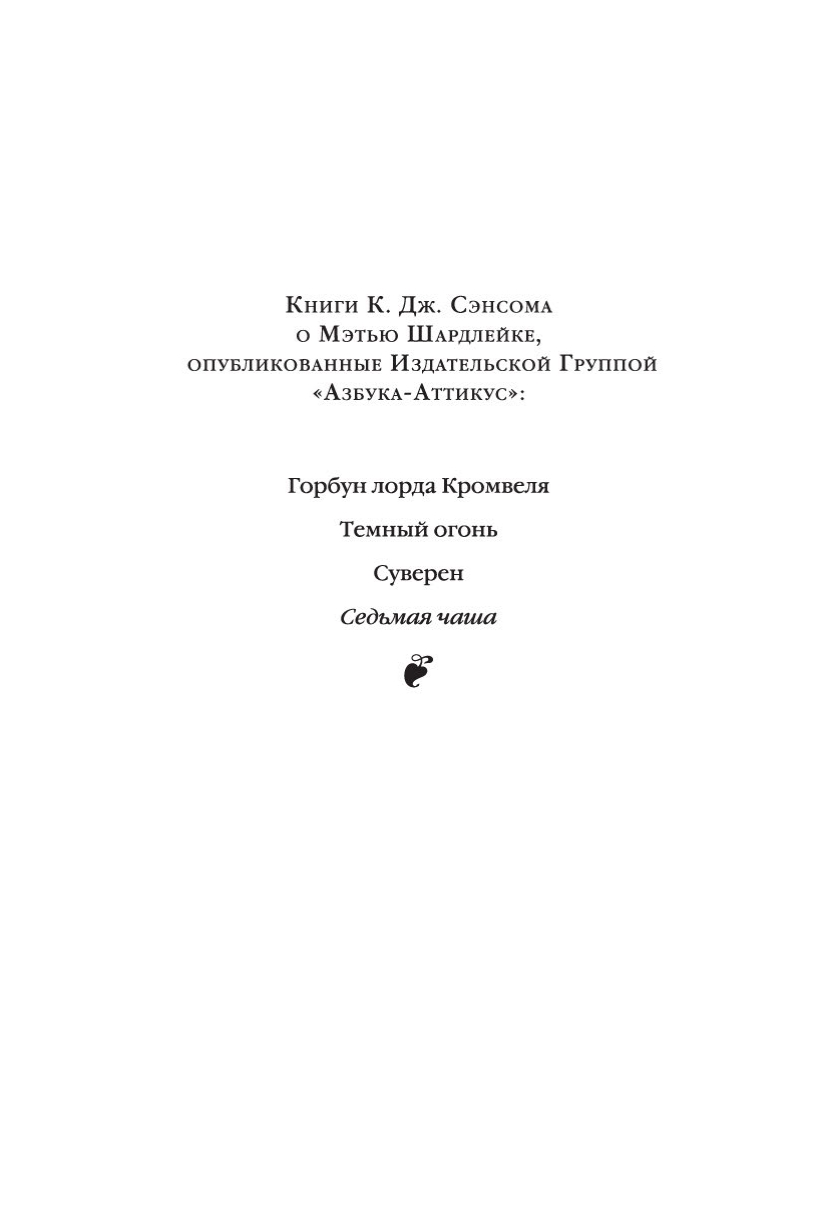 В мире литературных героев и в сознании сегодняшнего читателя образ Мэтью Шардлейка занимает почетное место в ряду с такими известными персонажами, как Шерлок Холмс, Эркюль Пуаро, Ниро Вульф и комиссар Мегрэ.