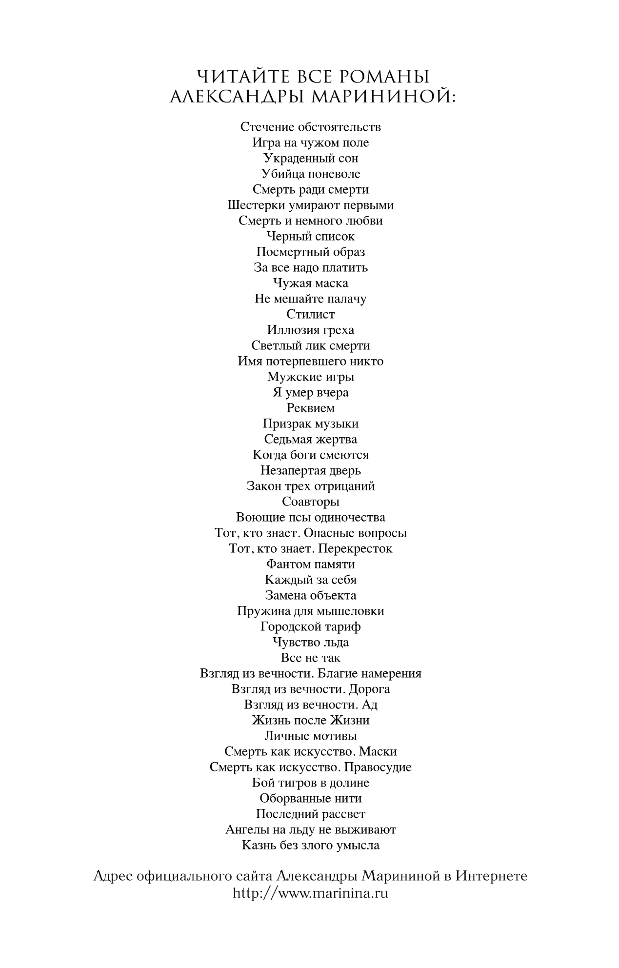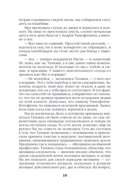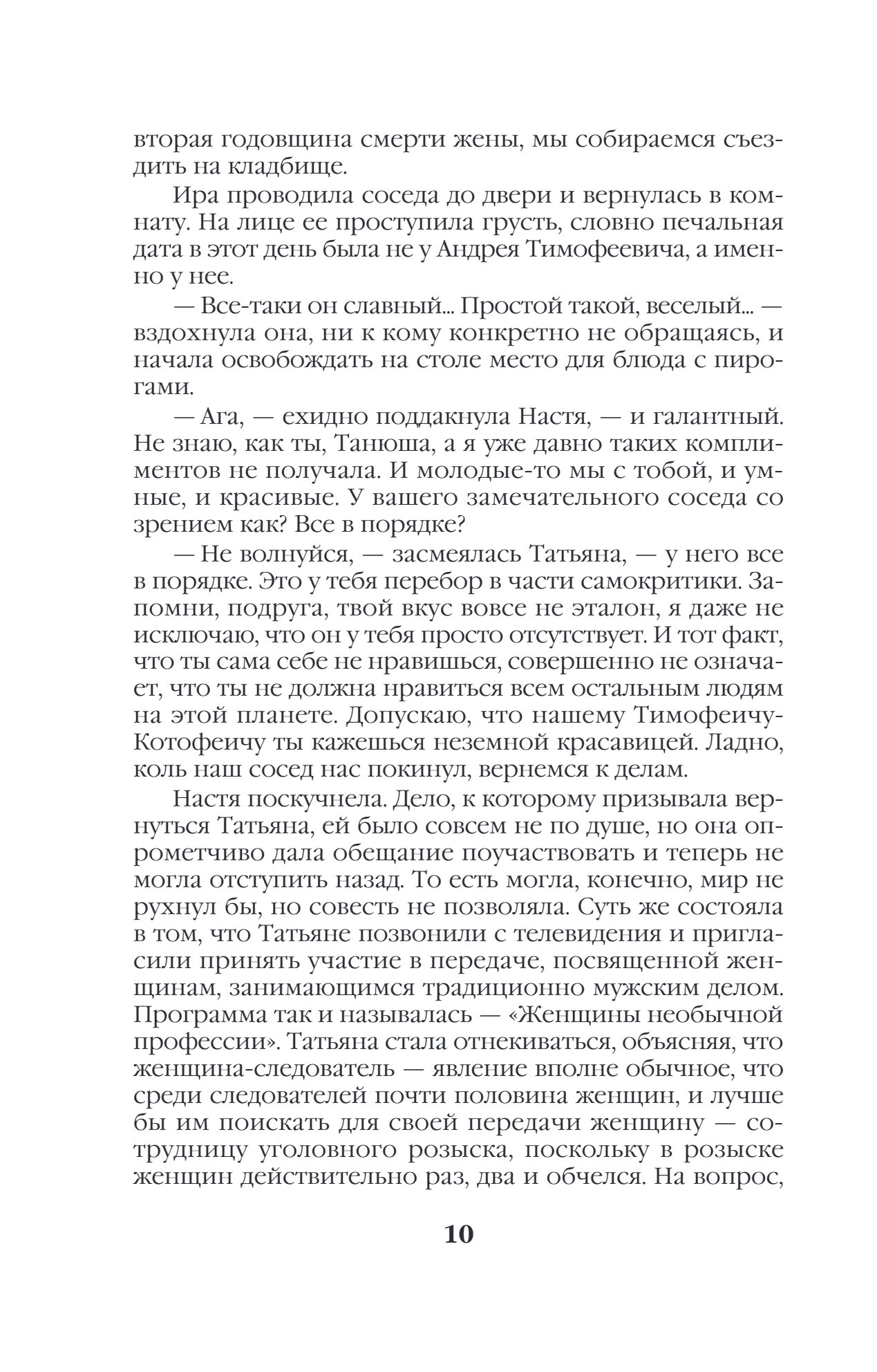 Ни сотрудник уголовного розыска Настя Каменская, ни следователь Татьяна Образцова не могли предполагать, что их согласие участвовать в телемосте «Женщины необычной профессии» приведет к трагедии. После прямого эфира один за другим начинают гибнуть одинокие малообеспеченные люди, а рядом с трупами таинственный убийца оставляет послания, которые не удается ни понять, ни расшифровать. Кому адресованы эти послания, Насте или Татьяне? И кто будет следующей жертвой?