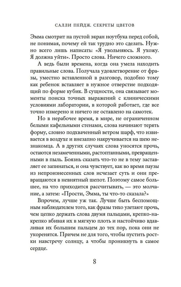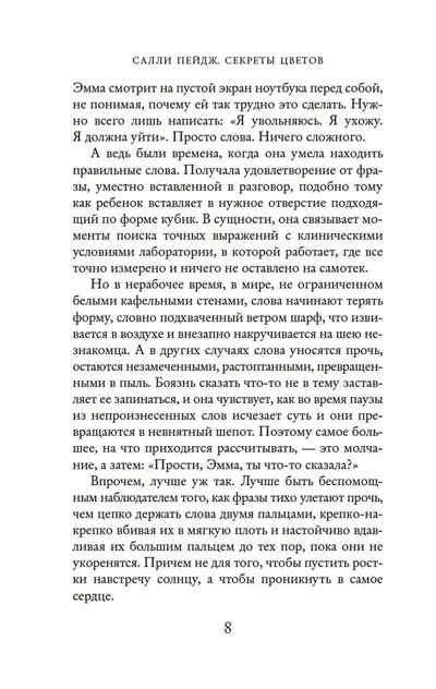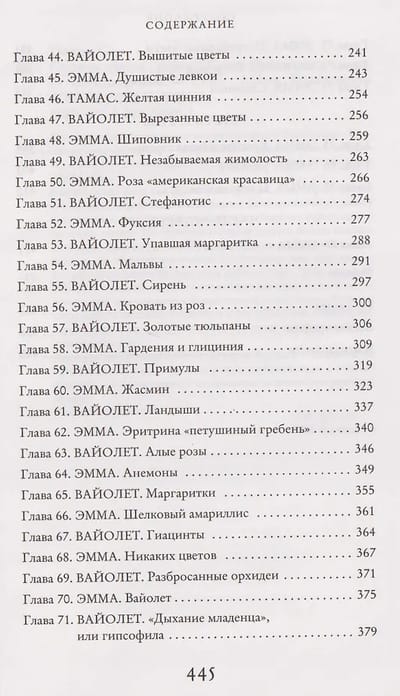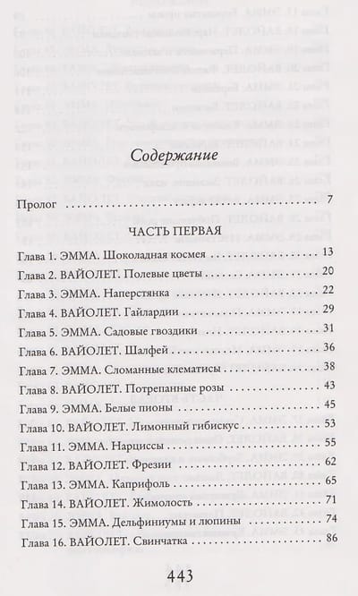 Смерть мужа стала для Эммы катастрофой, от которой она так и не смогла оправиться. Эмма решает бросить научную работу и от людей, с которыми ей очень тяжело общаться, укрыться среди ярких цветов. Но однажды коллегам удается зазвать новоиспеченную флористку на собрание местного исторического общества, где обсуждается первый и последний рейс «Титаника», и в ней неожиданно просыпается любопытство. Эмма начинает собирать сведения об этом злосчастном лайнере, и особенно ее интересует, кто занимался флористикой на его борту. Ведь там наверняка были цветы: композиции для украшения столов в ресторане, гвоздики для бутоньерок, букетики для корсажей роскошных платьев…