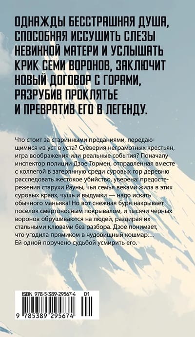 Январь 1995 года. Регион Венето. В забытом богом поселке среди неприступных венецианских Альп обнаружен изуродованный труп местной учительницы с вырванными глазами. Полиция ближайшего городка поручает инспектору Зои Тормен — дочери автогонщика, альпинистке и любительнице стиля гранж — в компании с судмедэкспертом, чопорным и элегантным Альвизе Стеллой, отправиться на место происшествия: тут, похоже, орудует маньяк-убийца. Но действительность оказывается гораздо хуже — вскоре появляется вторая жертва, потом третья… И все тела изодраны клювами воронов, темной тучей кружащих над поселком…