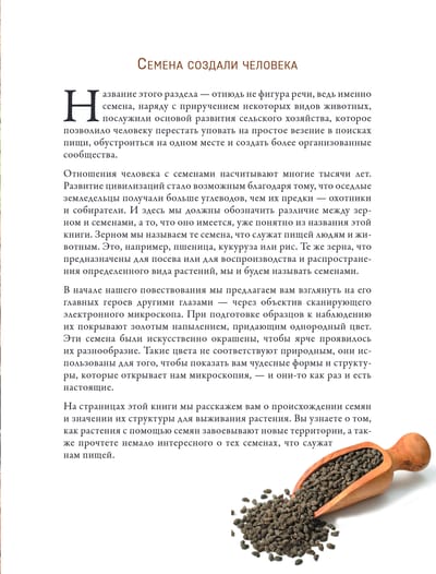 Но семена — это не просто источник пищи. Каждое зернышко, будь то пшеница, кукуруза или рис, обладает уникальными свойствами, которые ученые исследуют и по сей день. Эта книга — настоящее сокровище для всех, кто хочет глубже понять мир растений и их влияние на жизнь человечества. Что отличает зерно от семян? Какова их роль в нашем мире и как такие маленькие зернышки повлияли на развитие огромных цивилизаций? Вы узнаете это и многое другое, от изучения удивительных форм и структур семян через объектив электронного микроскопа до захватывающего путешествия в мир происхождения семян. Вы поймете значение их структуры для выживания растений и узнаете, как они помогают осваивать новые территории.