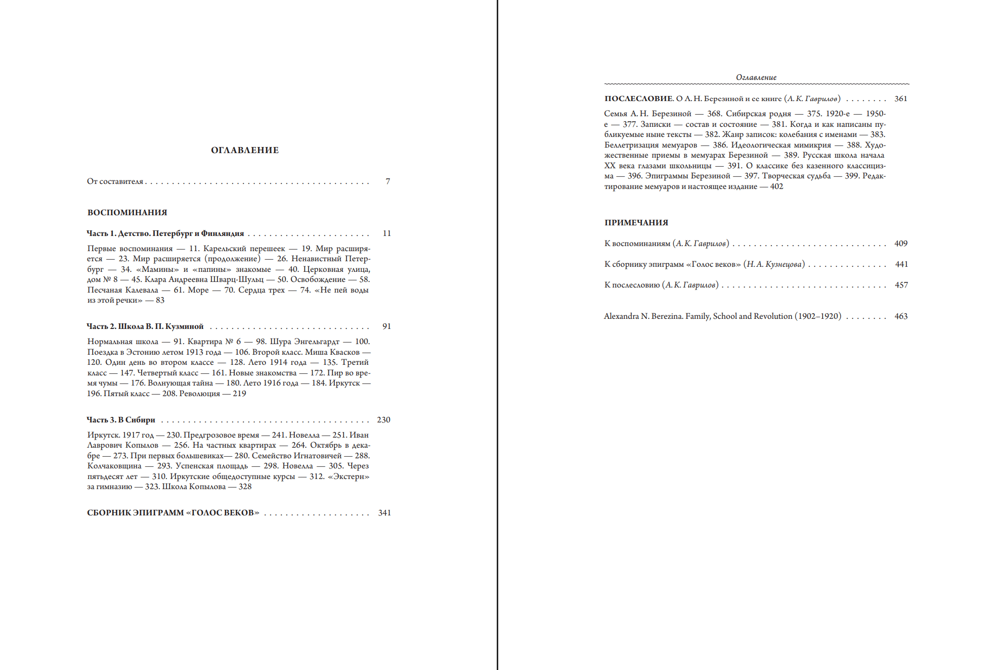 Впервые издаваемые беллетризованные воспоминания А. Н. Березиной (1902–1973) о ее благополучном детстве и тревожных юных годах публикуются вместе с ее стихами, описывающими в античных размерах опыт жизни женщины из высокоинтеллигентной семьи, оказавшейся в деклассированном состоянии в оттепель 1960-х. На примере гимназии В. П. Кузминой читатель может познакомиться с русской образовательной системой начала XX в., описанной автором по возможности так, как она наблюдала ее подростком. Кроме подробностей петербургского быта, читатель найдет в записках Березиной яркие страницы о российской Финляндии и об укладе жизни Сибири, в особенности Иркутска, до и во время революций 1917 г. Своеобразие текстов А. Н. Березиной в том, что русская революция и мировая война представлены здесь через восприятие учащейся молодежи тех лет. Эпиграммы Березиной, как и ее воспоминания, написаны в 1960-е гг. Вдохновившись формами, мотивами и стилем смолоду любимого эллинства, автор рассматривает свой опыт сквозь призму внешне бесстрастного взгляда, характерного для древних. Текст иллюстрируют избранные рисунки Березиной, мотивы которых сложились еще до ее словесных опытов.