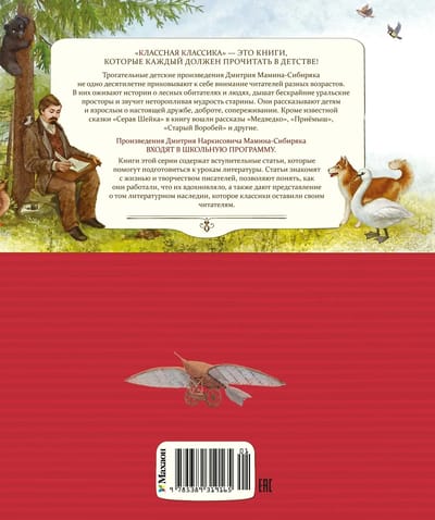 Трогательные детские произведения Дмитрия Мамина-Сибиряка не одно десятилетие приковывают к себе внимание читателей разных возрастов. В них оживают истории о лесных обитателях и людях, дышат бескрайние уральские просторы и звучит неторопливая мудрость старины. Они рассказывают детям и взрослым о настоящей дружбе, доброте, сопереживании. Кроме известной сказки «Серая Шейка» в книгу вошли рассказы «Медведко», «Приёмыш», «Старый Воробей» и другие.