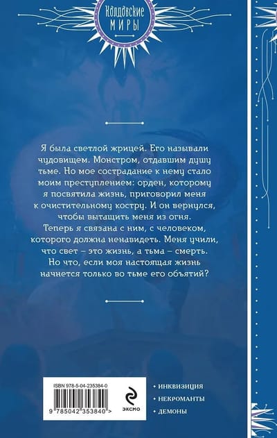 Я была светлой жрицей. Его называли чудовищем. Монстром, отдавшим душу тьме. Но мое сострадание к нему стало моим преступлением: орден, которому я посвятила жизнь, приговорил меня к очистительному костру. И он вернулся, чтобы вытащить меня из огня. Теперь я связана с ним, с человеком, которого должна ненавидеть. Меня учили, что свет — это жизнь, а тьма — смерть. Но что, если моя настоящая жизнь начнется только во тьме его объятий?