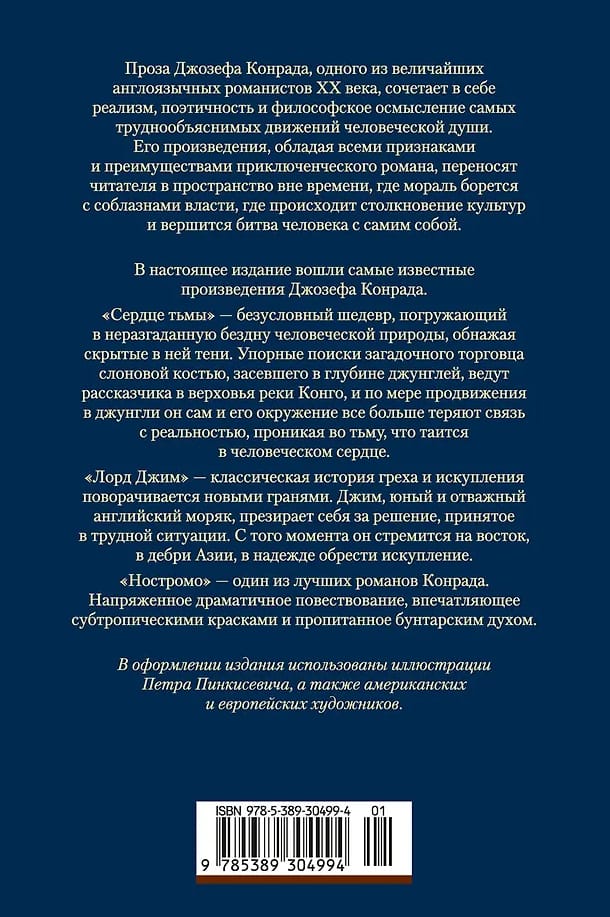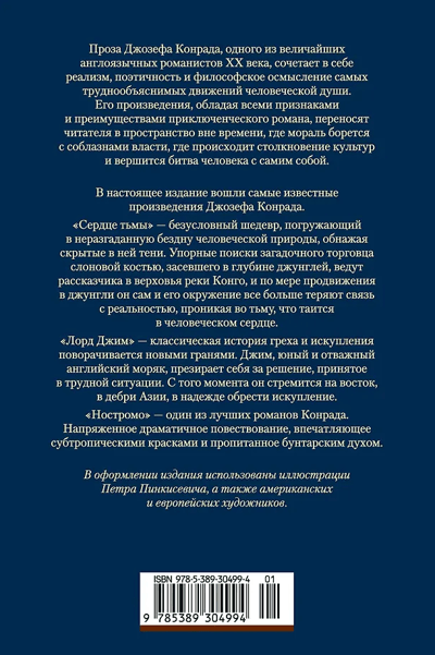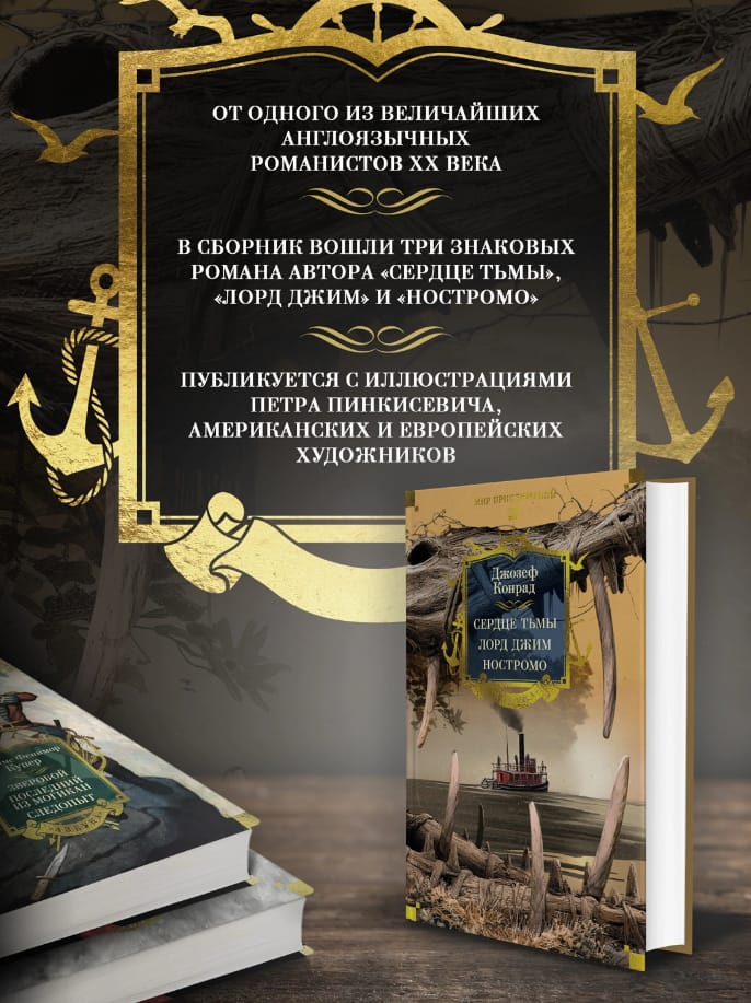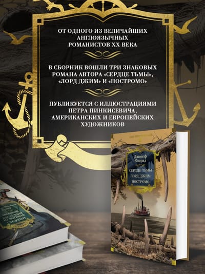 Проза Джозефа Конрада, одного из величайших англоязычных романистов XX века, сочетает в себе реализм, поэтичность и философское осмысление самых труднообъяснимых движений человеческой души. Его произведения, обладая всеми признаками и преимуществами приключенческого романа, переносят читателя в пространство вне времени, где мораль борется с соблазнами власти, где происходит столкновение культур и вершится битва человека с самим собой. В настоящее издание вошли самые известные произведения Джозефа Конрада.