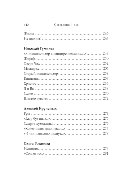 Серебряный век... Удивительный период в истории отечественной культуры, начавшийся в конце ХIХ века и прерванный октябрьским переворотом. Это было время интеллектуальных прозрений и социальных потрясений, получивших широкий отклик в искусстве и литературе. Наряду с шедеврами Александра Блока и Анны Ахматовой, Сергея Есенина и Марины Цветаевой читатель найдет в сборнике стихотворения десятков других мастеров стиха — от философа Владимира Соловьёва до эксцентрика и эгофутуриста Константина Олимпова. Перед вами — своего рода лирический дневник эпохи, которая, по словам Николая Оцупа, «по силе и энергии, а также по обилию удивительных созданий, почти не имеет аналогии на Западе: это как бы стиснутые в три десятилетия явления, занявшие, например, во Франции весь девятнадцатый и начало двадцатого века». Издание сопровождено подробным предисловием критика и историка литературы Валерия Шубинского.