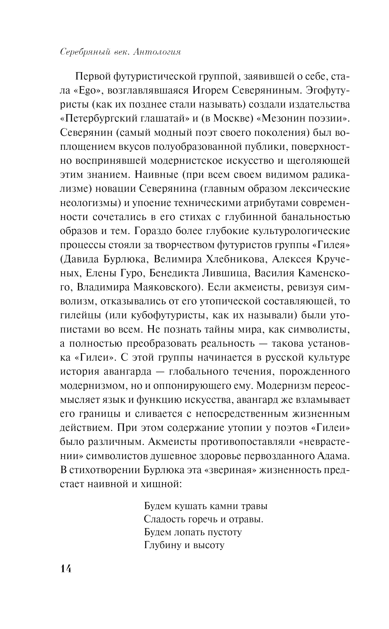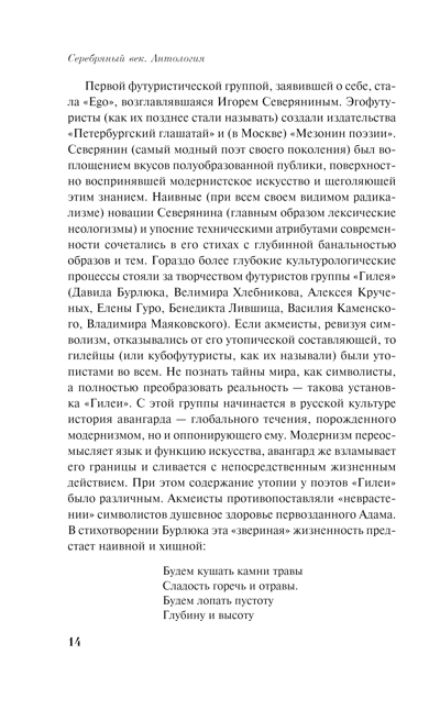 Серебряный век... Удивительный период в истории отечественной культуры, начавшийся в конце XIX века и прерванный октябрьским переворотом. Это было время интеллектуальных прозрений и социальных потрясений, получивших широкий отклик в искусстве и литературе. Наряду с шедеврами Александра Блока и Анны Ахматовой, Сергея Есенина и Марины Цветаевой читатель найдет в сборнике стихотворения десятков других мастеров стиха — от философа Владимира Соловьёва до эксцентрика и эгофутуриста Константина Олимпова. Перед вами — своего рода лирический дневник эпохи, которая, по словам Николая Оцупа, «по силе и энергии, а также по обилию удивительных созданий, почти не имеет аналогии на Западе: это как бы стиснутые в три десятилетия явления, занявшие, например, во Франции весь девятнадцатый и начало двадцатого века». Издание сопровождено подробным предисловием критика и историка литературы Валерия Шубинского.