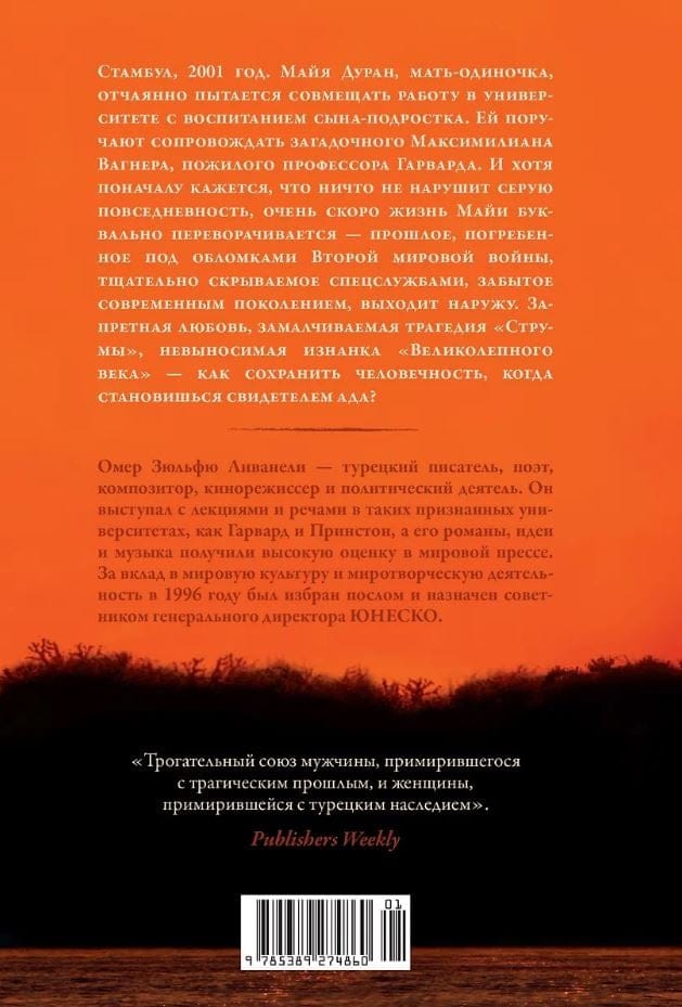 Стамбул, 2001 год. Майя Дуран, мать-одиночка, отчаянно пытается совмещать работу в университете с воспитанием сына-подростка. Ей поручают сопровождать загадочного Максимилиана Вагнера, пожилого профессора Гарварда. И хотя поначалу кажется, что ничто не нарушит серую повседневность, очень скоро жизнь Майи буквально переворачивается — прошлое, погребенное под обломками Второй мировой войны, тщательно скрываемое спецслужбами, забытое современным поколением, выходит наружу. Запретная любовь, замалчиваемая трагедия «Струмы», невыносимая изнанка «Великолепного века» — как сохранить человечность, когда становишься свидетелем ада?..
