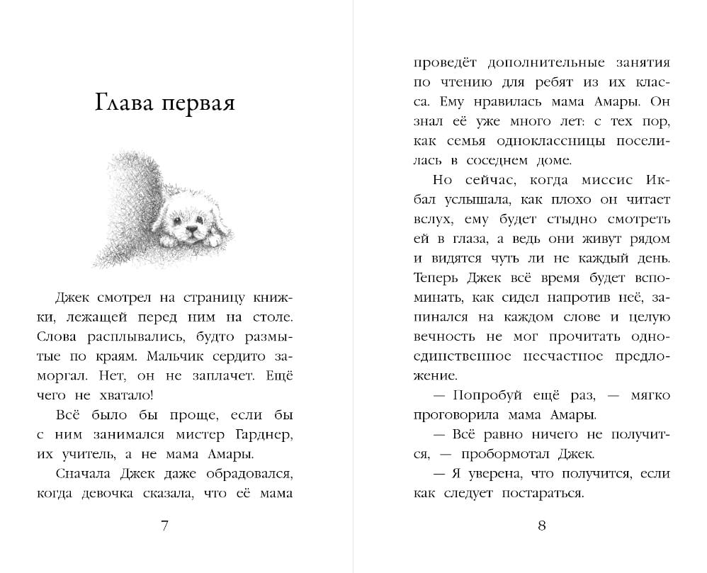 В жизни Джека есть одна большая трудность – он плохо читает. Буквы с трудом складываются в слова, а слова напрочь отказываются превращаться в предложения. Все в классе читают уже очень бойко, один Джек отстаёт. Конечно же, ему стыдно и грустно – вдруг друзья подумают, что он глупый? Проблема ещё в том, что взрослые, которые просят его почитать вслух, очень нетерпеливые. Мама всё время повторяет «Не волнуйся», сестра дёргает ногой и поглядывает на часы, а учитель громко вздыхает. Но однажды Джеку приходит в голову идея. Он помогает сестре в приюте, а там есть собаки, которых нужно приучать к человеку. Для начала – чтобы они хотя бы не боялись человеческого голоса. А что если он почитает вслух этому милому и очень робкому щенку Асти? Вдруг это поможет?