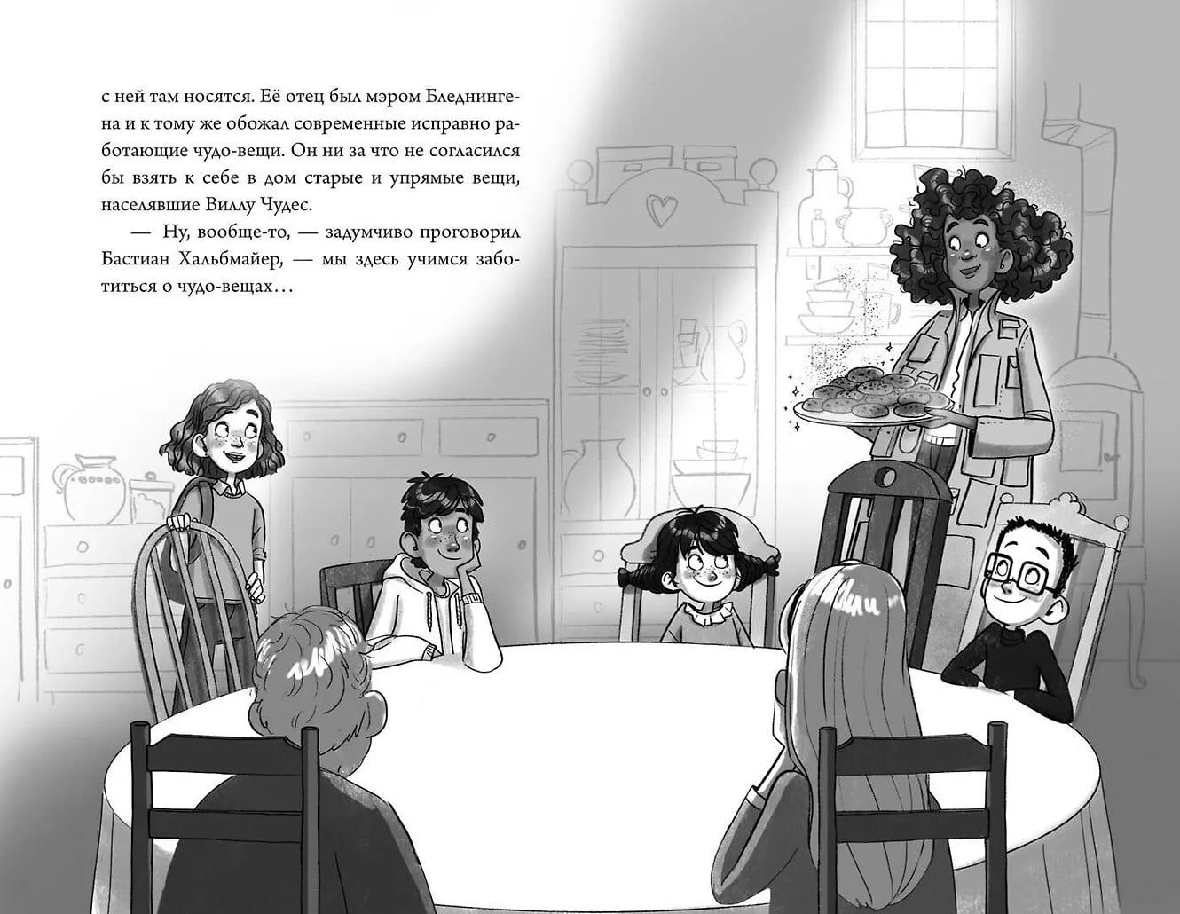 Книга прекрасно оформлена: белая плотная бумага, чёткий и удобный для детей шрифт, лак на обложке, цветные форзацы и чудесные чёрно-белые иллюстрации, которые делают чтение ещё интереснее и помогают лучше погрузиться в мир чудо-вещей.