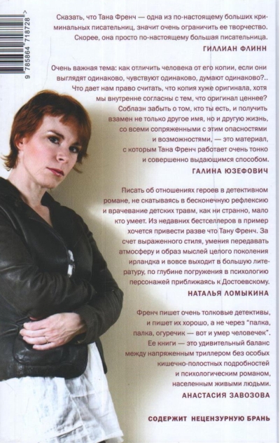 «Сходство» – один из лучших детективов из знаменитой серии Таны Френч о работе Дублинского отдела убийств. Однажды в уединенном полуразрушенном коттедже находят тело молодой женщины, жившей по соседству в старой, ветшающей усадьбе «Боярышник». На место убийства вызывают Кэсси Мэддокс, бывшего детектива из отдела убийств. Кэсси в недоумении, она уже давно ушла из Убийств и работает теперь в Отделе домашнего насилия. Но, оказавшись на месте, она понимает, в чем дело: убитая – ее полный двойник, то же лицо, фигура, волосы. Как такое возможно? И возможно ли вообще?.. Однако бывшему боссу Кэсси, легендарному агенту Фрэнку Мэкки, нет дела до таких загадок, для него похожесть детектива на жертву – отличная возможность внедрить своего человека в окружение жертвы и изнутри выяснить, кто стоит за преступлением. Так начинается погружение детектива в чужую жизнь, и вскоре Кэсси понимает, что ее с жертвой объединяет не только внешнее сходство, но и глубинное сродство.