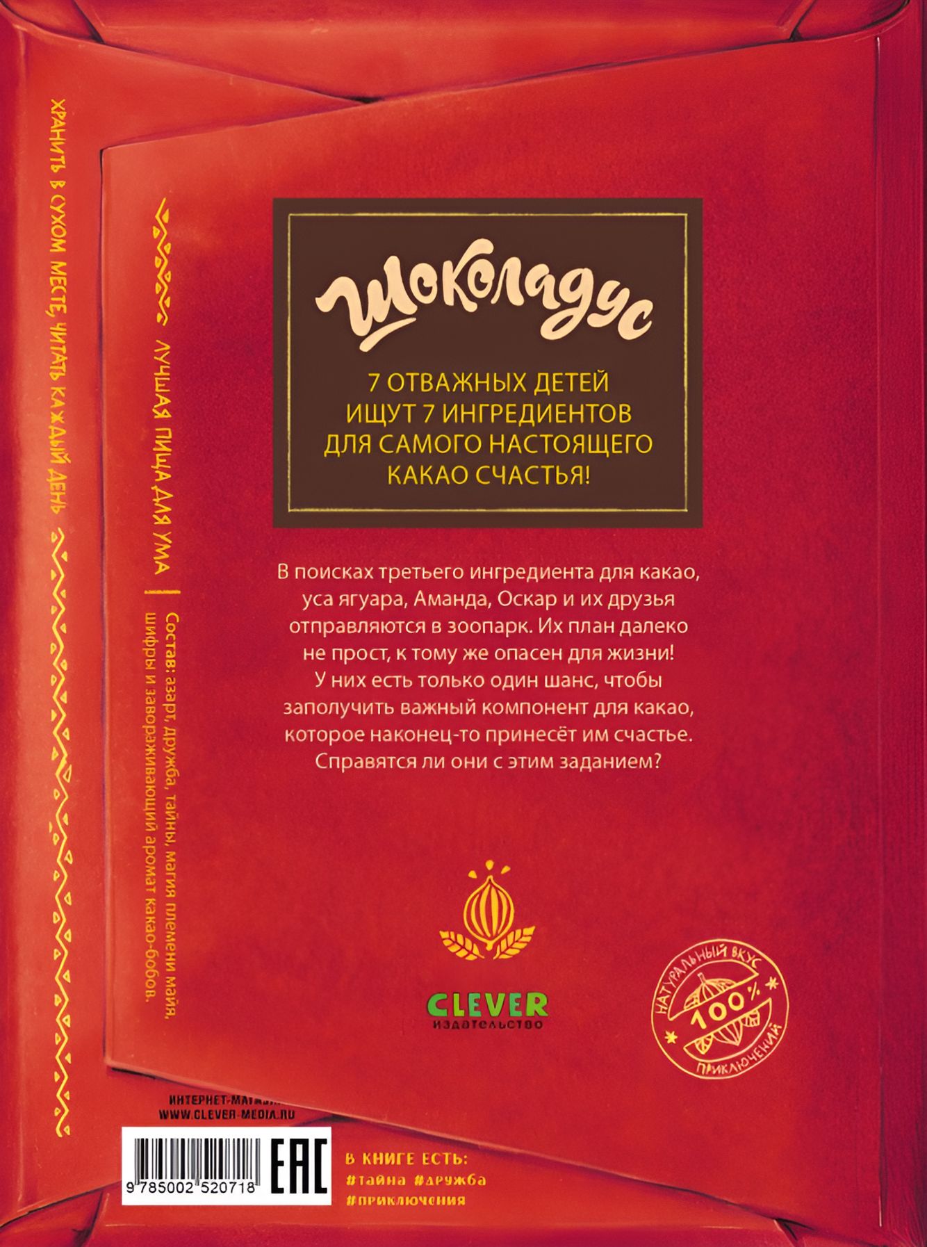 «Шоколадус. Секрет ягуара» — продолжение захватывающих приключений отважных ребят, которые ищут семь ингредиентов для волшебного напитка — какао счастья. Дружба, тайны, магия племени майя, шифры и много-много шоколада — скучно не будет!