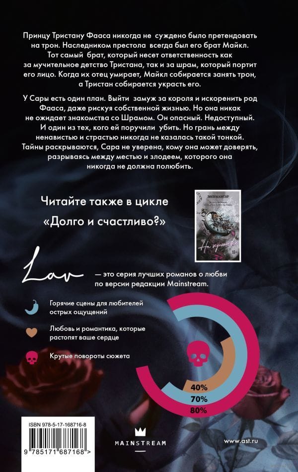 У Сары есть план. Выйти замуж за короля и искоренить род Фааса, даже рискуя собственной жизнью. Но она никак не ожидает познакомиться со Шрамом. Он опасен. И один из тех , кого ей поручили убить. Но грань между ненавистью и страстью никогда не казалась такой тонкой, и Сара перестает понимать, кому она может доверять, и разрывается между местью и злодеем, которого она никогда не должна полюбить.