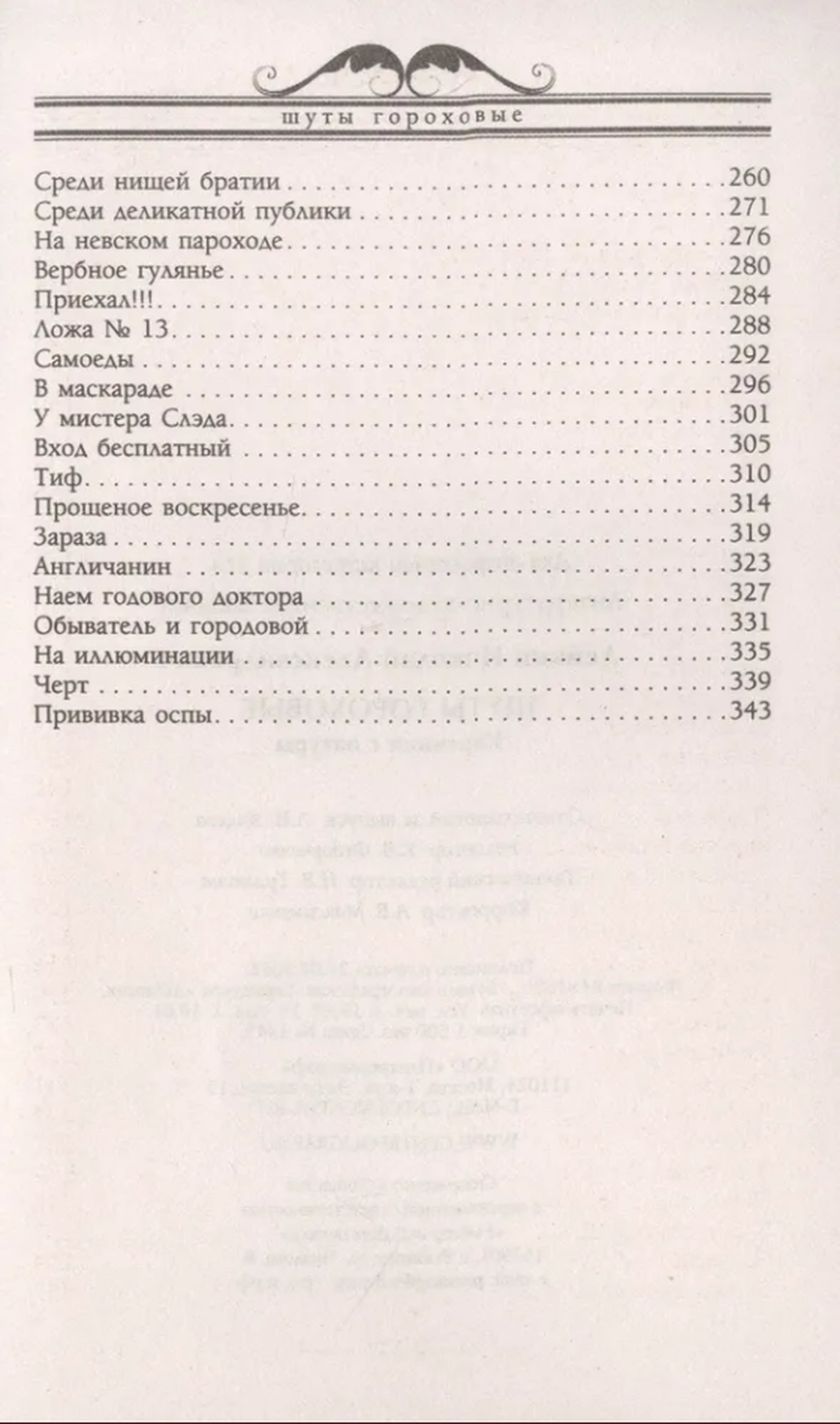 В этом сборнике рассказов перед читателем предстает парад мест, событий, действующих лиц и ситуаций, характерных для конца XIX века и изображенных в свойственном известному сатирику-классику Н.А. Лейкину ироническом ключе. Во всем можно найти смешную сторону, и все люди, можно сказать, шуты гороховые, если взглянуть с определенного угла, а герои зарисовок-наблюдений автора-юмориста — так уж точно. Однако рассказы отнюдь не однобоки, они не демонстрируют только веселые и до смешного неприглядные стороны человеческой натуры, но и показывают грустные, лирические сцены. Как в прошлом, так и теперь жизнь на удивление многогранна, и творчество Н.А. Лейкина в полной мере раскрывает ее разносторонность.