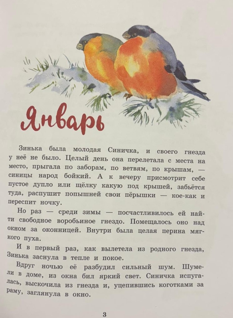 Так начинается сказка Виталия Бианки, в которой каждый месяц года раскрывается через жизнь птиц и других лесных обитателей. Каждый месяц приносит Зиньке новые открытия: в январе она ищет корм в лютые морозы, весной радуется первому солнцу и слушает песни вернувшихся с юга птиц, летом видит, как растут детёныши у зверей, а осенью наблюдает за листопадом и подготовкой животных к зиме.
