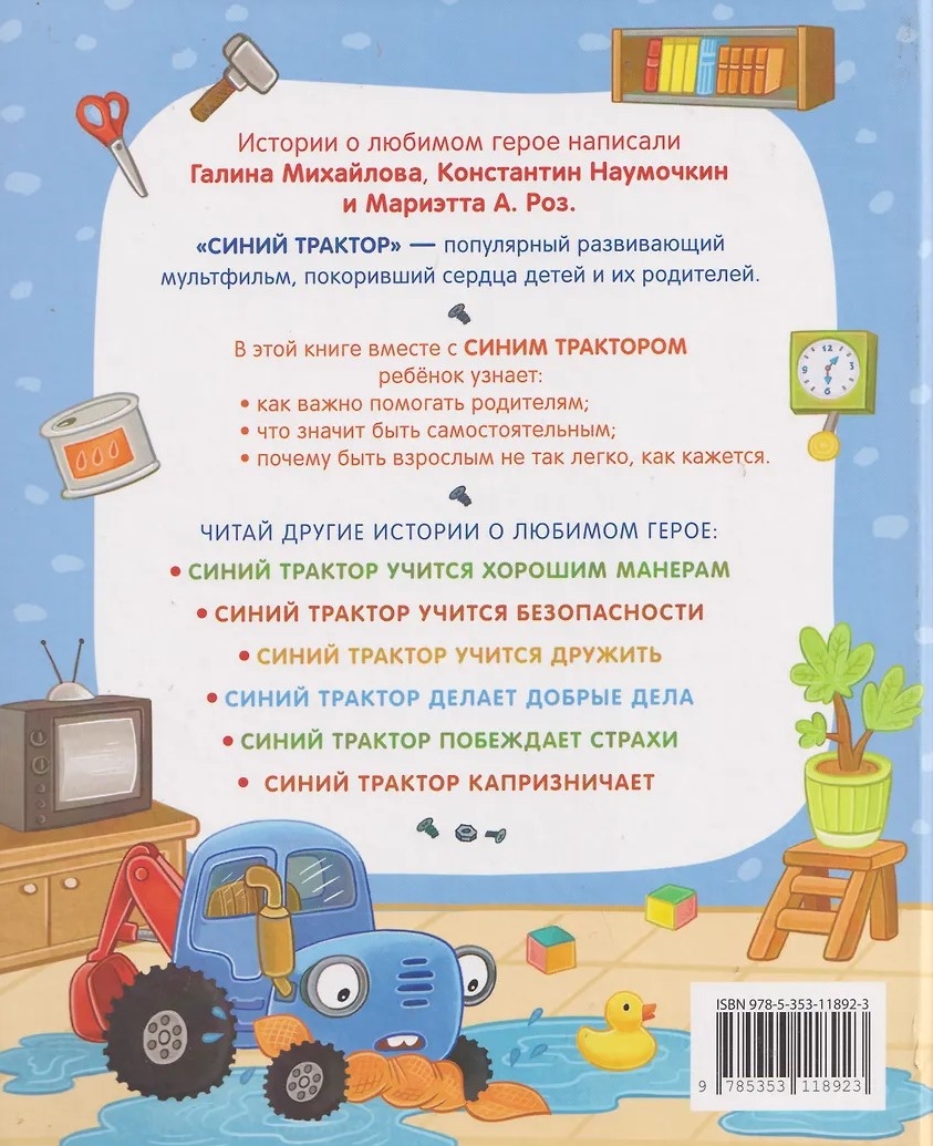 Новая встреча с героем любимых мультфильмов – полезные сказки про детство Синего Трактора! Сюжеты сборника познакомят малышей с правилами поведения в обществе и расскажут, как справиться с новыми обязанностями. Плотные страницы, большие красочные иллюстрации, крупный шрифт для удобства чтения с ребенком.