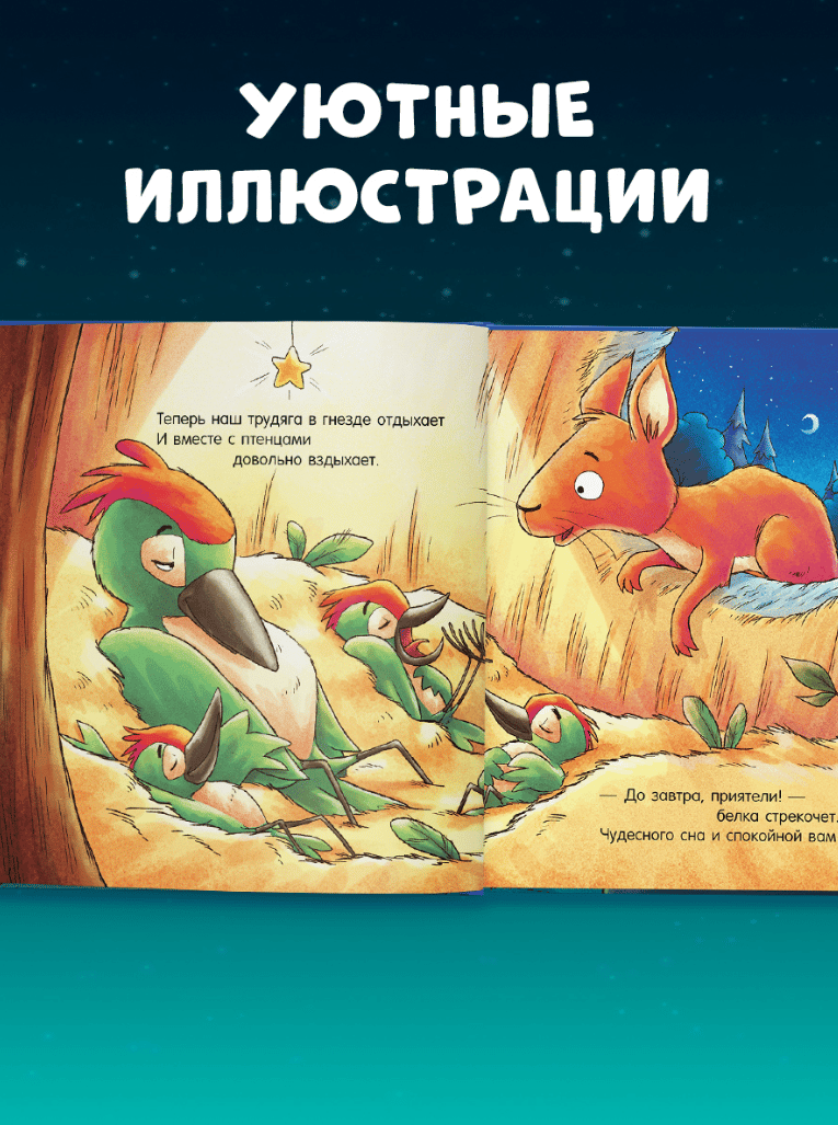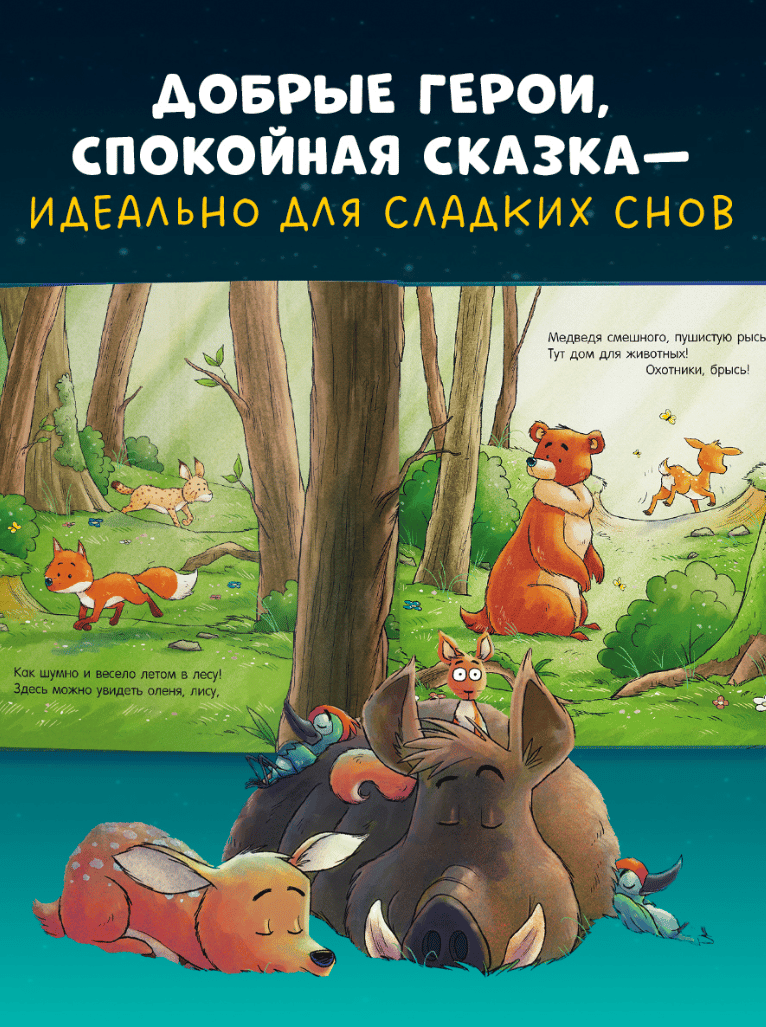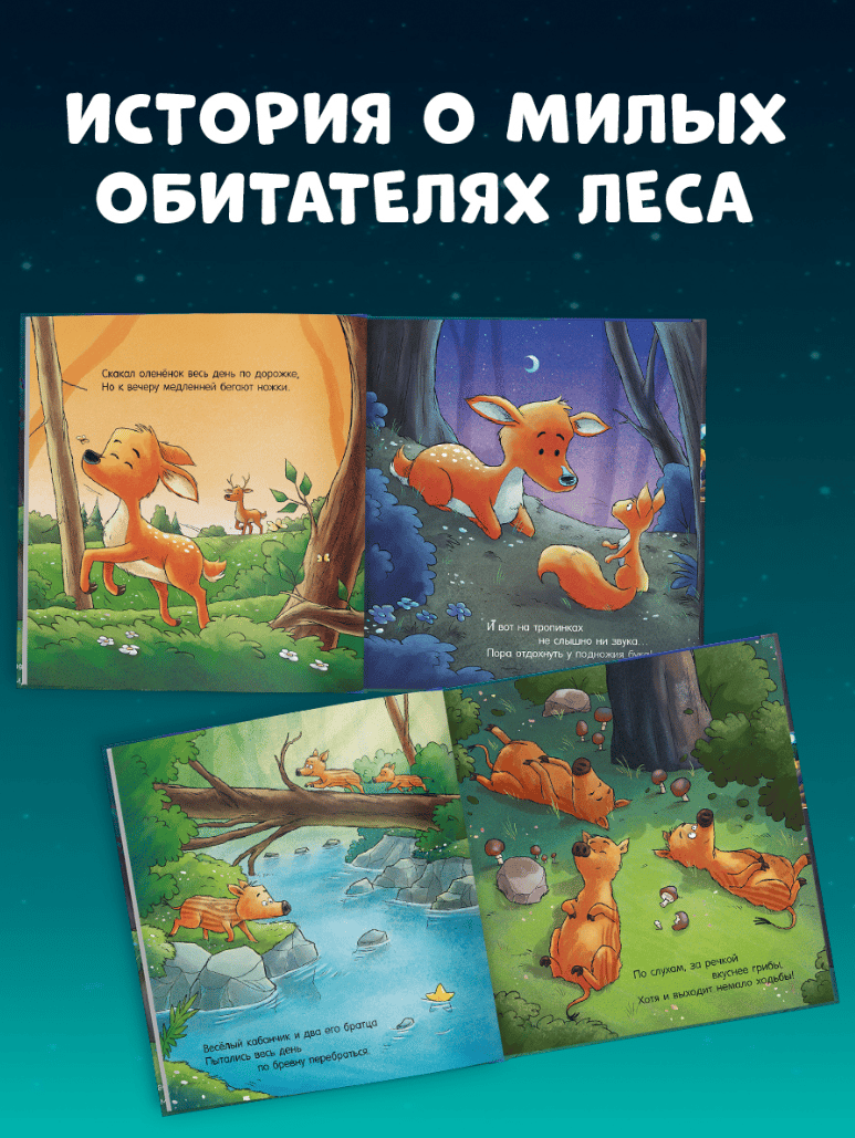 Пусть книжка «Спокойной ночи, лесные зверята!» с милыми картинками станет для ваших детей любимым засыпательным ритуалом и подарит сладкие сны!