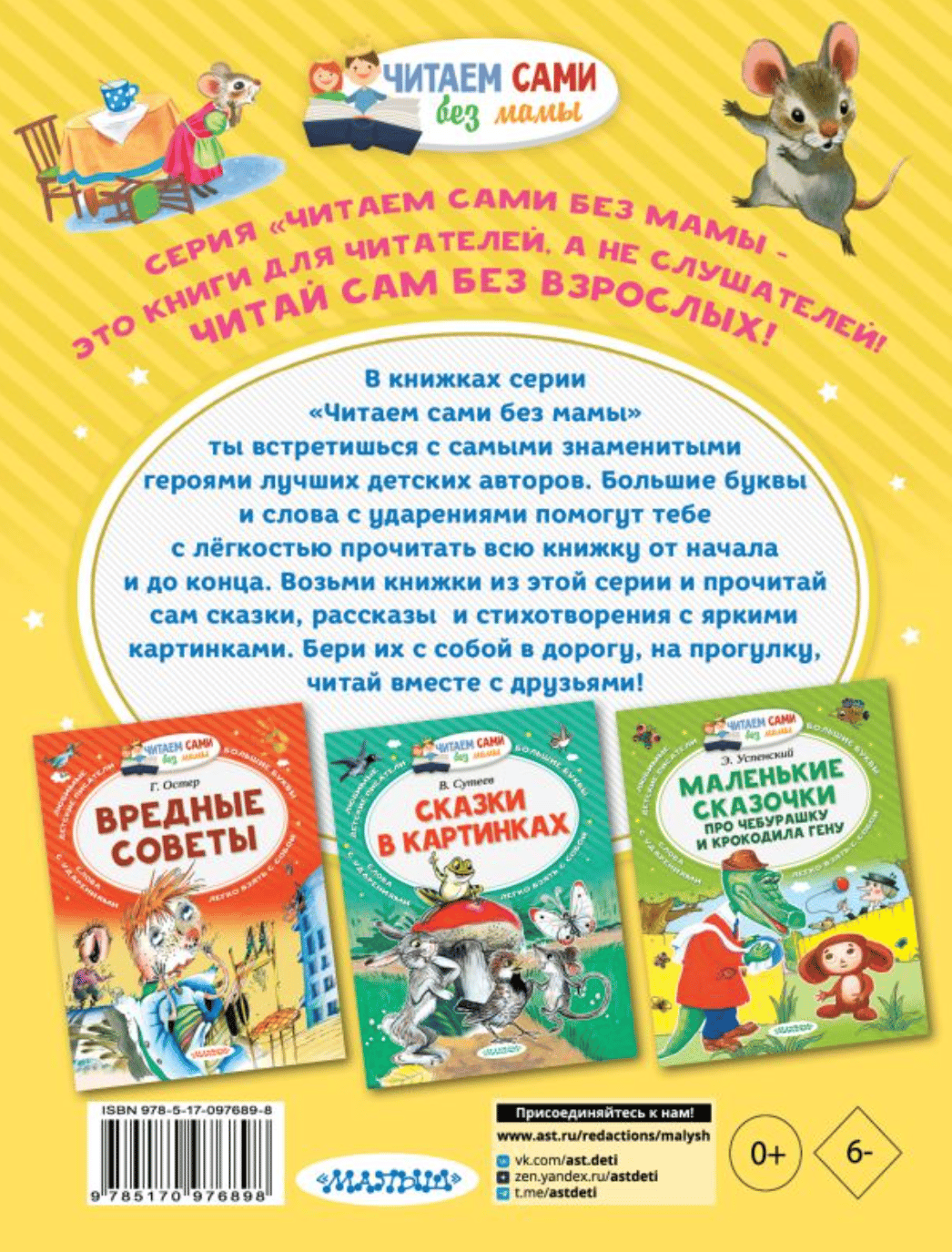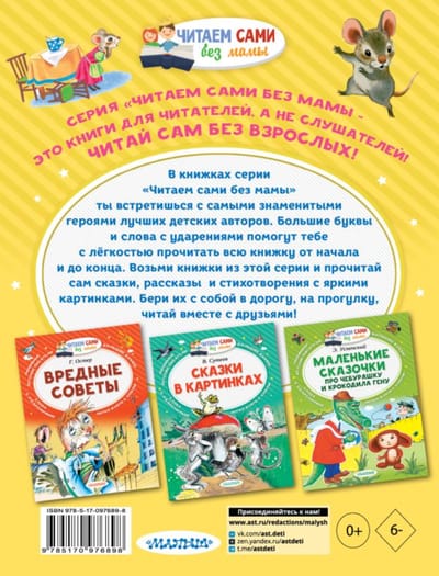 Книга С. Маршака «Сказки» прекрасно подходит для первого самостоятельного чтения. Ведь в этом сборнике удобного формата самые известные сказки в стихах, большие буквы, слова с ударениями и много цветных иллюстраций. Книжки серии «Читаем сами без мамы» можно взять с собой в дорогу, на прогулку и читать вместе с друзьями!