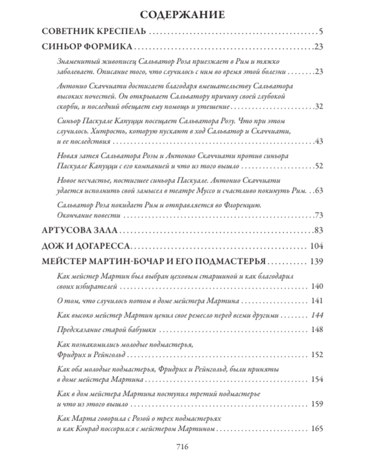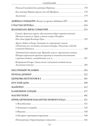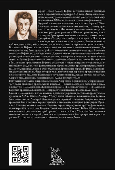 Сборник включает четырнадцать новелл и повестей знаменитого немецкого писателя-романтика Эрнста Теодора Гофмана, а также четыре его сказочные повести: «Щелкунчик и Мышиный король», «Песочный человек», «Маленький Цахес по прозванью Циннобер» и «Приключения накануне Нового года». Все тексты даны в переводе З. А. Вершининой. Издание украшают рисунки французских художников XIX в. Поля Гаварни и Шарля Д’Арну, писавшего под псевдонимом Берталь.
