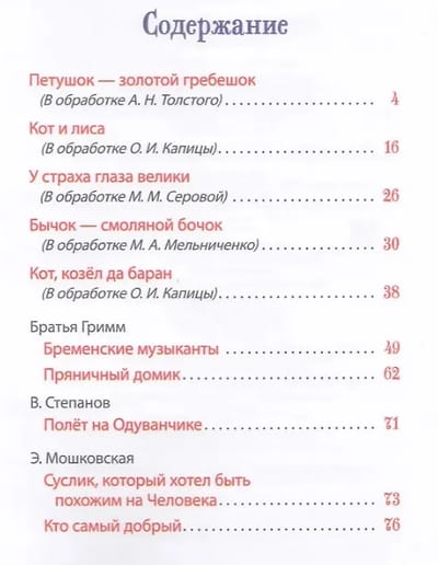 В сборник вошли короткие сказки для самых маленьких. Некоторые из них хорошо знакомы малышам и их родителям: это русские народные сказки «Петушок - золотой гребешок», «Кот и лиса», «Бычок - смоляной бочок». А сказки отечественных авторов - В.Степанова и Э.Мошковской - вы, возможно, прочтете ребенку впервые. Веселые, яркие иллюстрации современной художницы Л. Ношин обязательно понравятся каждому малышу.