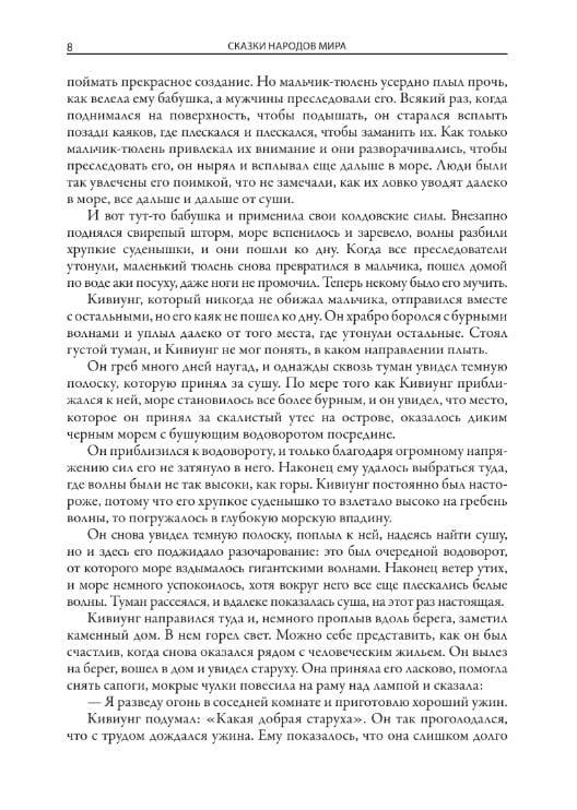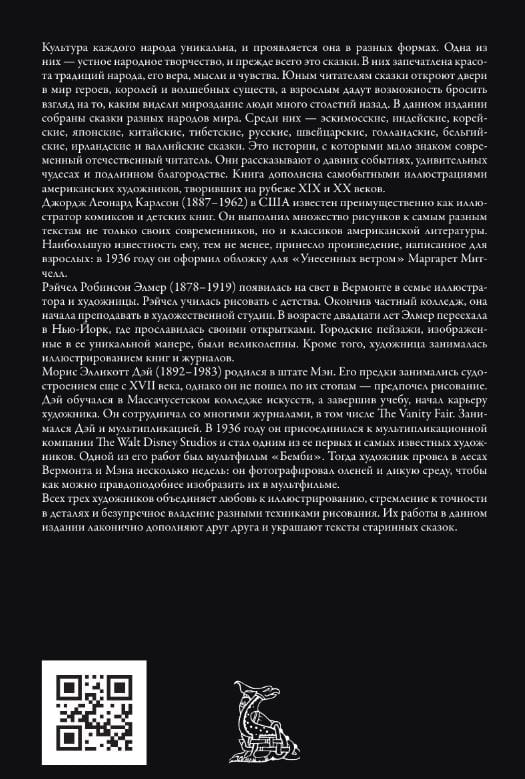 Культура каждого народа уникальна, и проявляется она в разных формах. Одна из них — устное народное творчество, и прежде всего это сказки. В них запечатлена красота традиций народа, его вера, мысли и чувства. Юным читателям сказки откроют двери в мир героев, королей и волшебных существ, а взрослым дадут возможность бросить взгляд на то, каким видели мироздание люди много столетий назад. В данном издании собраны сказки разных народов мира. Среди них — эскимосские, индейские, корейские, японские, китайские, тибетские, русские, швейцарские, голландские, бельгийские, ирландские и валлийские сказки. Это истории, с которыми мало знаком современный отечественный читатель. Они рассказывают о давних событиях, удивительных чудесах и подлинном благородстве.