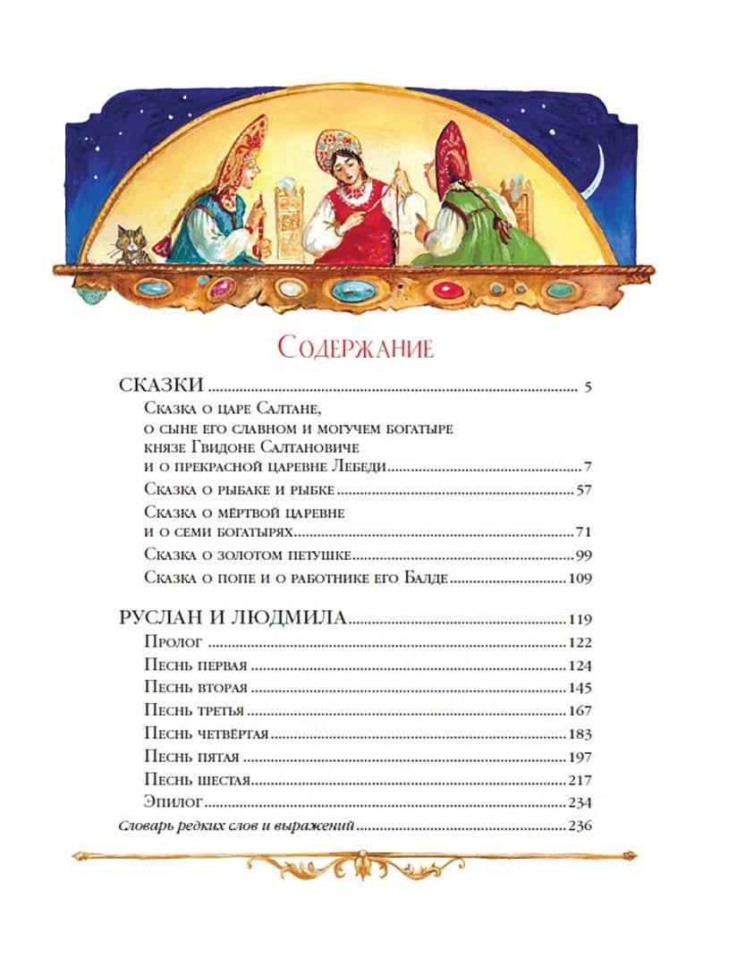 Написанные почти два столетия назад знаменитые стихотворные сказки Александра Сергеевича Пушкина остаются любимыми историями, без которых немыслимо детство. Ведь они создали уникальный и волшебный мир, в котором обитают и былинные русские герои, и славные девицы-красавицы, и могущественные волшебники, и необыкновенные фантастические существа: русалки, нечистая сила, огромная живая голова и ещё многие-многие другие удивительные герои. В них, несмотря на всевозможные препятствия и козни врагов, всегда побеждают добро и справедливость, и они ни капельки не страшные. А ещё богатый и выразительный язык сказок расширяет словарный запас, развивает воображение и закладывает основу для духовного развития ребёнка.