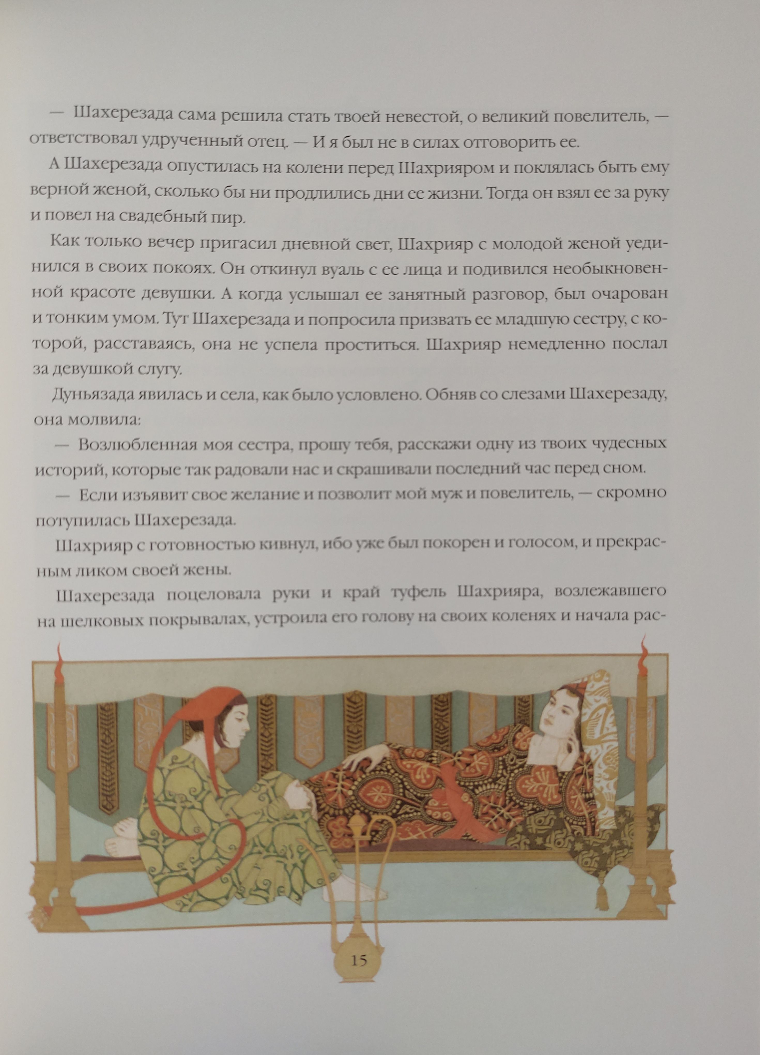 Царь Шахрияр так боялся женской неверности, что на каждую ночь выбирал себе новую жену и казнил её утром – чтобы никто не успел его обмануть! Так продолжалось долгое время, пока его супругой не стала мудрая Шахерезада. По ночам она рассказывала ему такие удивительные истории, что царь с нетерпением ждал продолжения и откладывал жестокую казнь ещё на день…