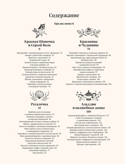Сказки и рецепты дают возможность посетить другие миры: где, как не на кухне, мы сможем совершить путешествие по разным странам с их уникальными традициями и культурой – и все это за один-единственный ужин! Если вам не терпится побывать в восточной стране из «Алладина и волшебной лампы», можно зажечь свечи и поужинать блюдом восточной кухни. «Красная Шапочка» вдохновит на сытную лесную трапезу, а изысканные блюда помогут перенестись на прием в королевский замок! А что, если вспомнить любимые с детства сказки и совместить их со сказочными рецептами? План таков: сначала вы поудобнее устроитесь на диване и насладитесь волшебными историями, а затем превратите кухню в сказочную страну! В этой книге ореховое жаркое и сытный гуляш сменяются маринованной форелью и карамельным парфе с морской солью. А запеченные персики или сыр - мороженым с базиликом и эспрессо с горячим шоколадом. Изысканно, ярко, вкусно и по-настоящему волшебно!