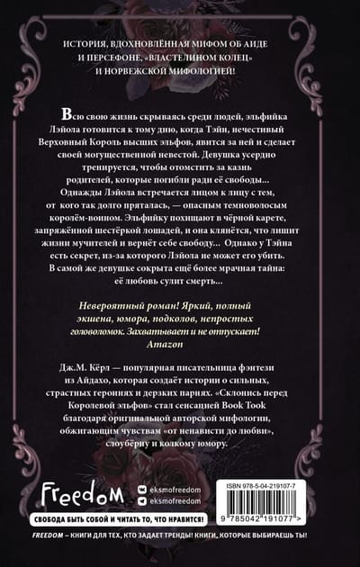 Удивительное романтическое фэнтези — история, вдохновленная мифом об Аиде и Персефоне, «Властелином колец» и норвежской мифологией. Слоуберн, колкий юмор, пламенная история любви, оригинальная авторская вселенная!
