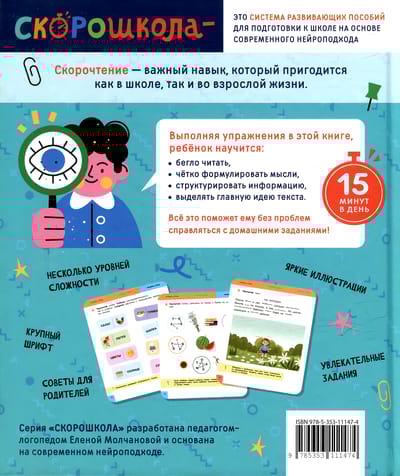 Скорочтение. Упражнения для беглого и осознанного чтения - поможет ребенку наработать навык быстрого, осознанного чтения в игровой форме.