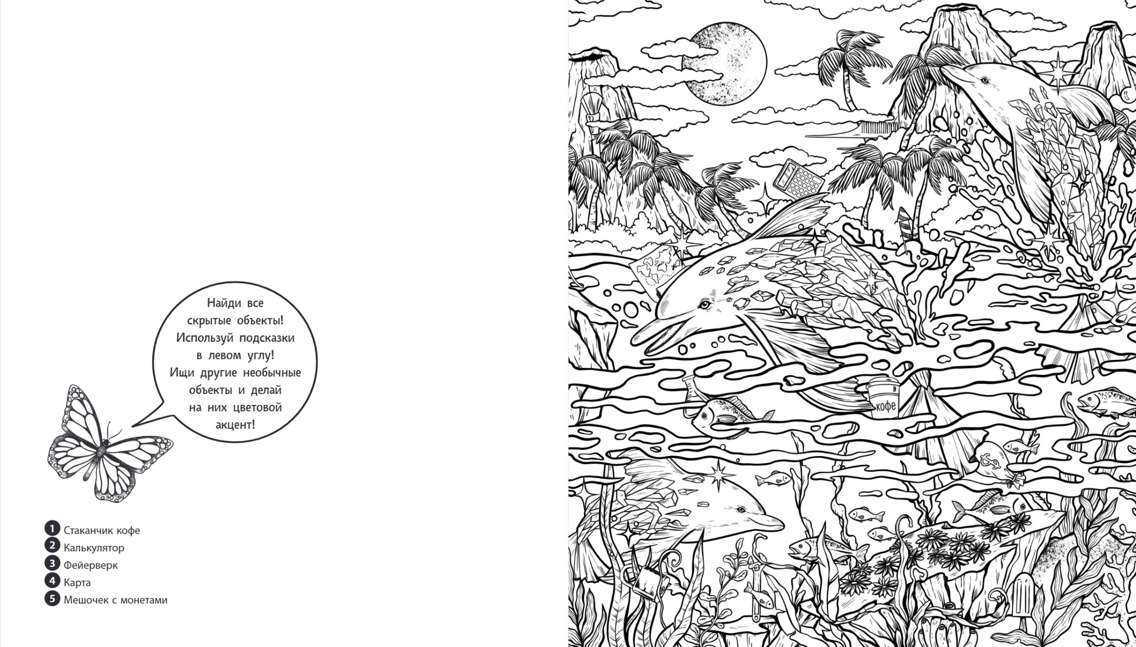 Понаблюдайте, как пространства реальные и фантазийные трансформируются, меняются и оживают в новых образах, поразительных деталях и тончайших линиях на пределе чёткости. Наполните цветом мир, где чудесным образом в реальном скрывается волшебное. Откройте для себя невидимые глазу вселенные. Раскрашивайте и ищите скрытые предметы — раскройте невероятную и прекрасную тайну спрятанных пространств и целых миров в привычном и знакомом.