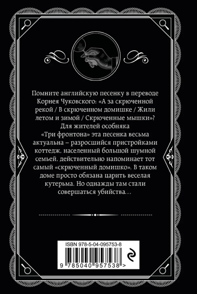Помните английскую песенку в переводе Корнея Чуковского: "А за скрюченной рекой / В скрюченном домишке / Жили летом и зимой / Скрюченные мышки"? Для жителей особняка "Три фронтона" эта песенка весьма актуальна - разросшийся пристройками коттедж, населенный большой шумной семьей, действительно напоминает тот самый "скрюченный домишко". В таком доме просто обязана царить веселая кутерьма. Но однажды там стали совершаться убийства…