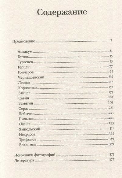 В книге 19 глав, каждая из которых посвящена одному из прославленных или забытых писателей. Здесь портреты и знаменитых Гоголя, Тургенева, Олеши, Трифонова, и полузабытого Савина, и малоизвестного Сержа. Такие разные писатели, такие разные эпохи... Как признаётся в предисловии автор, «смысл этой книги не всеобщий охват, а выбор сердца, не последовательность истории, а сиюминутность дружбы и любви».