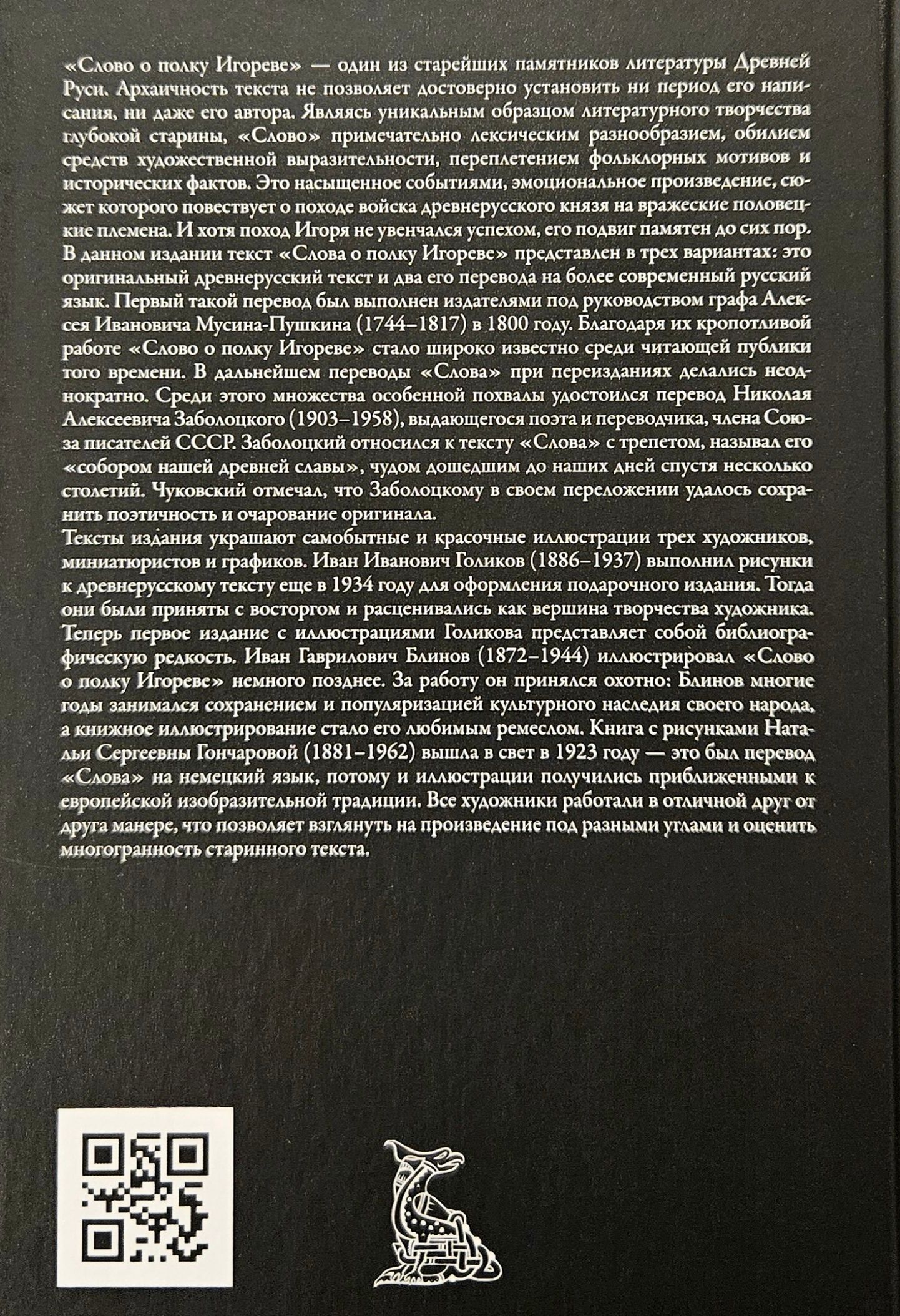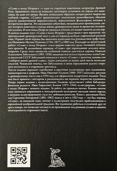Тексты издания украшают самобытные и красочные иллюстрации трех художников, миниатюристов и графиков. Иван Иванович Голиков (1886–1937) выполнил рисунки к древнерусскому тексту еще в 1934 году для оформления подарочного издания. Тогда они были приняты с восторгом и расценивались как вершина творчества художника. Теперь первое издание с иллюстрациями Голикова представляет собой библиографическую редкость. Иван Гаврилович Блинов (1872–1944) иллюстрировал «Слово о полку Игореве» немного позднее. За работу он принялся охотно: Блинов многие годы занимался сохранением и популяризацией культурного наследия своего народа, а книжное иллюстрирование стало его любимым ремеслом. Книга с рисунками Натальи Сергеевны Гончаровой (1881–1962) вышла в свет в 1923 году — это был перевод «Слова» на немецкий язык, потому и иллюстрации получились приближенными к европейской изобразительной традиции. Все художники работали в отличной друг от друга манере, что позволяет взглянуть на произведение под разными углами и оценить многогранность старинного текста.