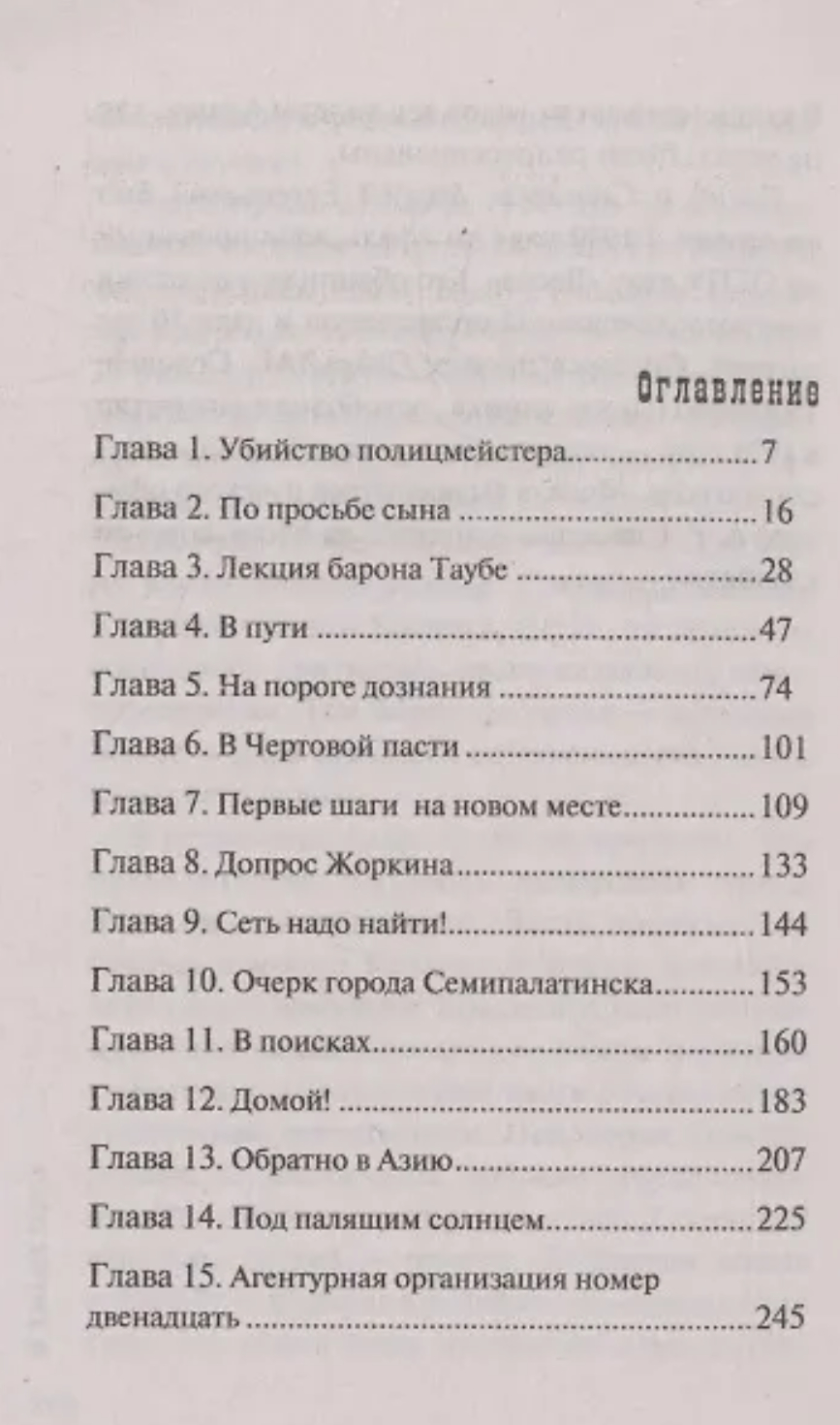 В Семипалатинске зарезан полицмейстер. По горячим следам преступление раскрыто, убийца застрелен при аресте. Дело сдано в архив. Однако военный разведчик Николай Лыков-Нефедьев подозревает, что следствию подсунули подставную фигуру. На самом деле полицмейстера устранили агенты британской резидентуры, которых он сильно прижал. А свалили на местных уголовников… Николай сообщил о своих подозрениях в Петербург. Он предложил открыть новое дознание втайне от местных властей. По его предложению в город прибыл чиновник особых поручений Департамента полиции коллежский советник Лыков. Отец с сыном вместе ловят в тихом Семипалатинске подлинных убийц. А резидент в свою очередь готовит очередную операцию. Ее жертвой должен стать подпоручик Лыков-Нефедьев…