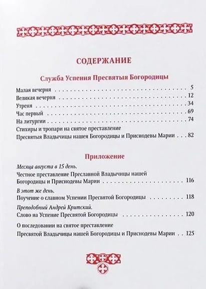 Это издание должно не только помочь священнослужителям и певчим при совершении служб праздника Успения Пресвятой Богородицы, но и дать возможность молящимся следить за ходом службы.
