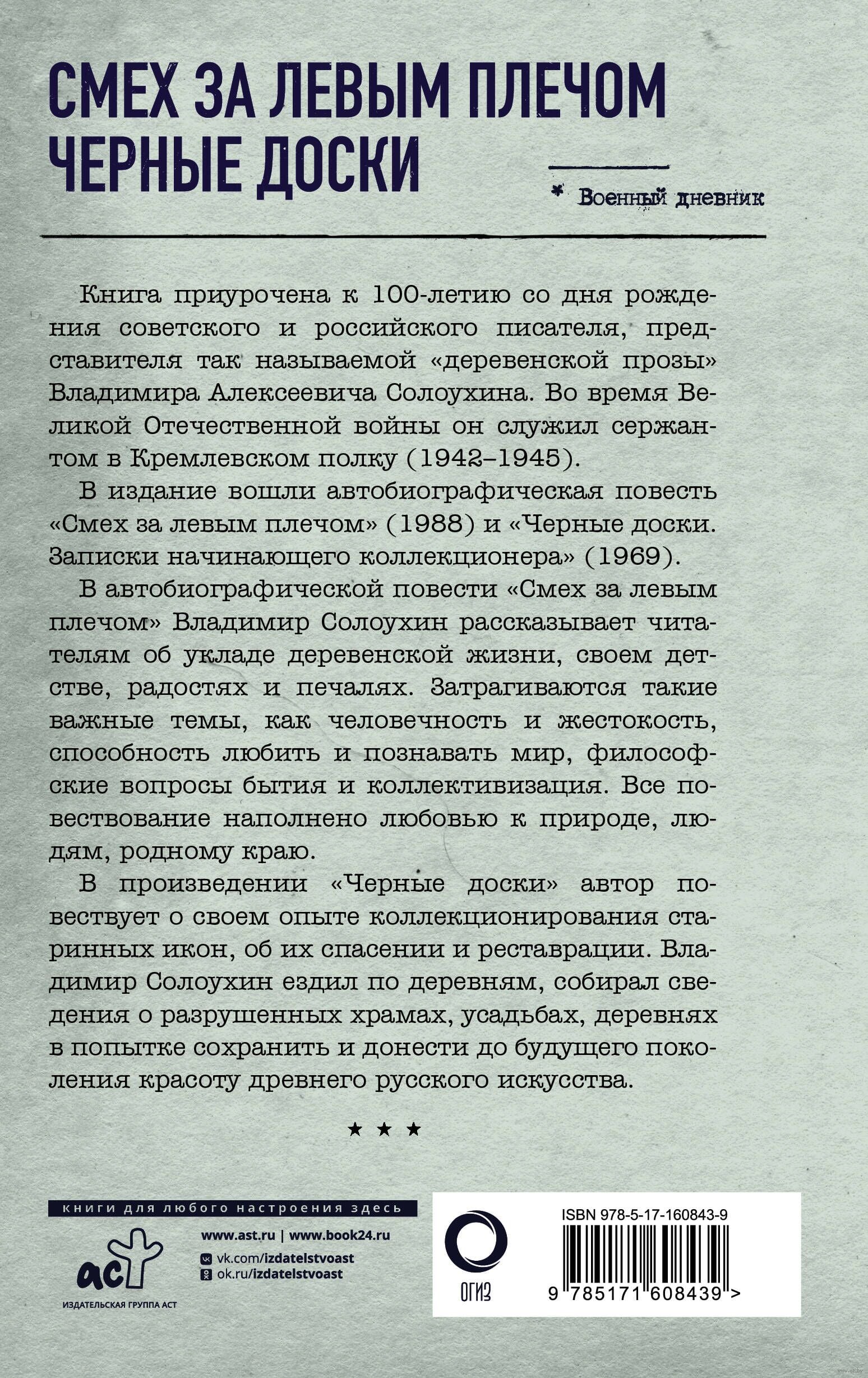 Книга приурочена к 100-летию со дня рождения советского и российского писателя, представителя так называемой «деревенской прозы» Владимира Алексеевича Солоухина.