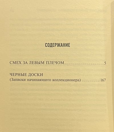 В издание вошли автобиографическая повесть «Смех за левым плечом» (1988) и «Черные доски. Записки начинающего коллекционера» (1969).