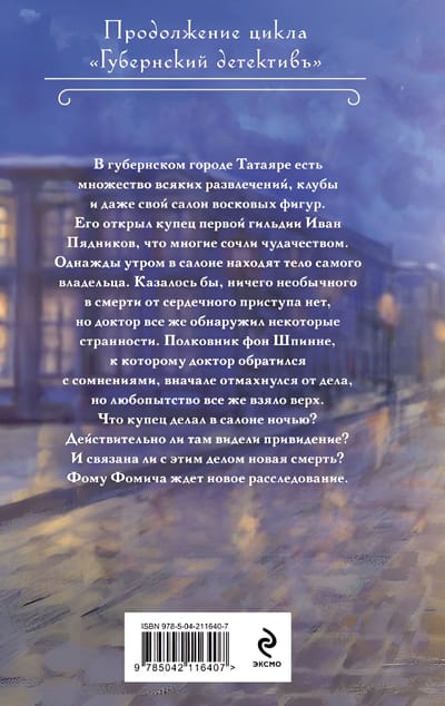 В губернском городе Татаяре есть множество всяких развлечений, клубы, и даже свой салон восковых фигур. Его открыл купец первой гильдии Иван Пядников, что многие сочли чудачеством. Однажды утром в салоне находят тело самого владельца. Казалось бы, ничего необычного в смерти от сердечного приступа нет, но доктор все же обнаружил некоторые странности. Полковник фон Шпинне, к которому доктор обратился с сомнениями, вначале отмахнулся от дела, но любопытство все же взяло верх. Что купец делал в салоне ночью? Действительно ли там видели привидение? И связана ли с этим делом новая смерть? Фому Фомича ждет новое расследование.