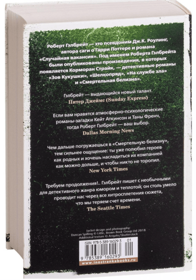 У Билли явные проблемы с умственным здоровьем, но он уверен, что в детстве видел убийство ребенка, - и давняя тревога наконец приводит его в офис частного детектива Корморана Страйка, вновь прославившегося после поимки Шеклуэллского Потрошителя. Договорить Билли не успевает, спугнутый перспективой скорого приезда полиции, но его история не выходит у Страйка из головы. Попытки докопаться до истины поведут Страйка и его помощницу Робин Эллакотт (ставшую полноценным партнером в их агентстве) сложным извилистым путем: от окраинных клубов, где собираются противники Лондонской олимпиады, - в пропитанные интригами коридоры власти, от парламентских кабинетов - к окутанному тайной имению в глубине Оксфордшира... Но еще неизвестно, что будет Корморану и Робин сложнее - разгадать эту головоломную загадку или разобраться в своих чувствах.