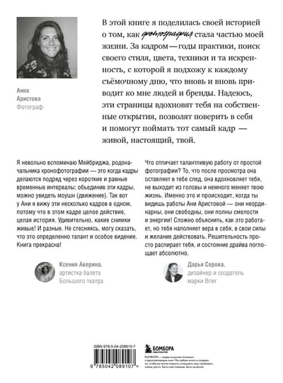 Книга-наставник и книга-поддержка для тех, кто начинает свой путь в фотографии, а также море вдохновения для всех, кто ценит красоту и умеет не только смотреть, но и видеть.