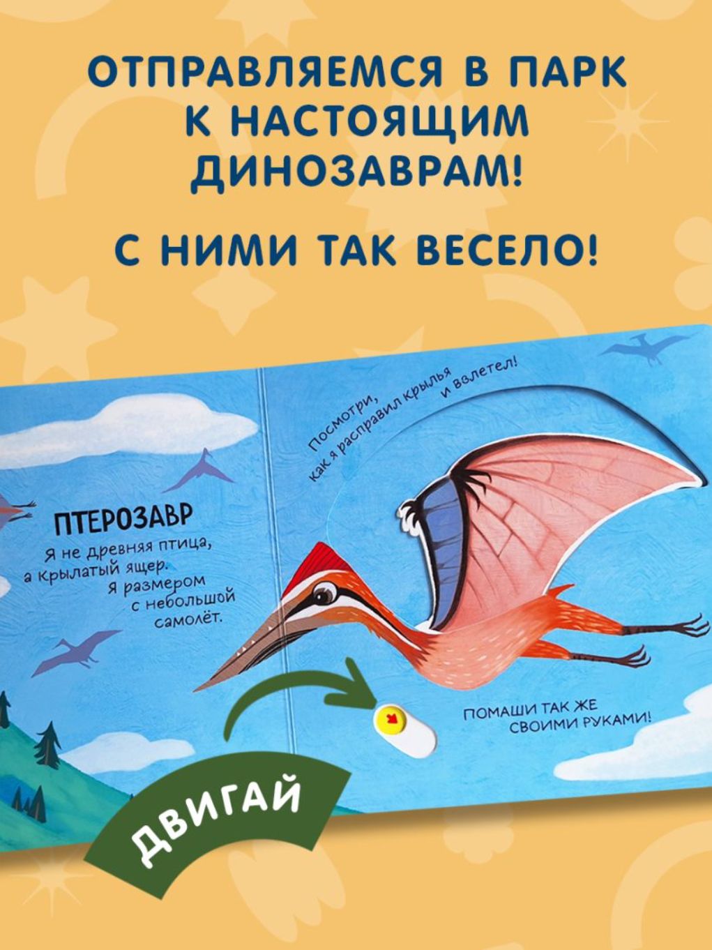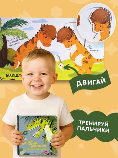 Яркие картинки, простые и забавные тексты познакомят ребенка с первыми интересными фактами о древних ящерах. А подвижные элементы помогут развить мелкую моторику, внимание и воображение.