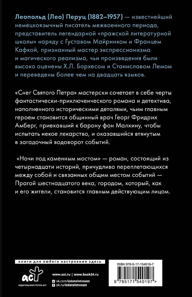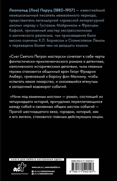 «Снег Святого Петра» мастерски сочетает в себе черты фантастически-приключенческого романа и детектива, наполненного историческими деталями, чьим главным героем становится общинный врач Георг Фридрих Амберг, приехавший к барону фон Малхину, чтобы испытать некое лекарство, и оказавшийся втянутым в загадочный водоворот событий.