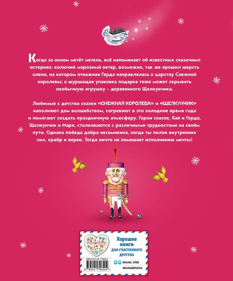 Эта книга — как волшебный путеводитель по любимым зимним сказкам: последуете за Гердой и окажетесь в окутанных холодом чертогах Снежной королевы, а если отправитесь вслед за Щелкунчиком, то вас ждет невероятная битва с Мышиным королём и путешествие в Кукольное королевство.