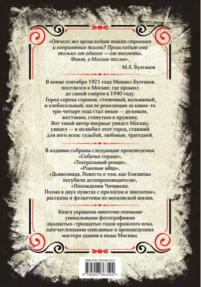 Книга украшена многочисленными уникальными фотографиями двадцатых–тридцатых годов прошлого века, запечатлевшими описанные в произведениях мастера здания и виды Москвы.
