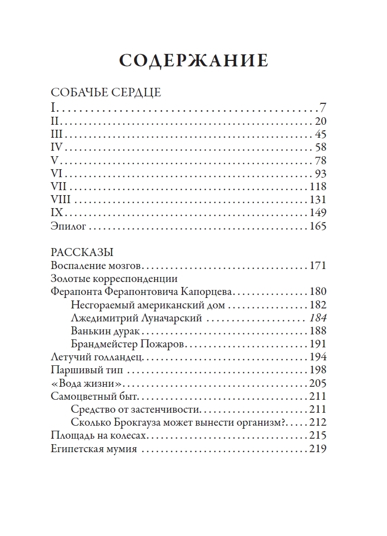 Помимо знаменитой повести «Собачье сердце» Михаила Афанасьевича Булгакова, которая печатается по последней выправленной автором машинописи, в книгу включены двенадцать рассказов писателя, в том числе из цикла «Золотые корреспонденции Ферапонта Ферапонтовича Капорцева» и «Самоцветный быт». Повесть проиллюстрирована динамичными рисунками талантливого современного художника Максима Поповского, рассказы — рисунками, выполненными Николаем Эрнестовичем Радловым (1889–1942).