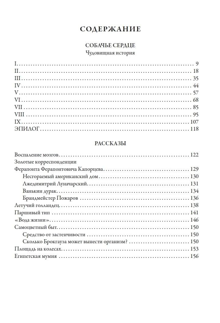 Помимо знаменитой повести «Собачье сердце» Михаила Афанасьевича Булгакова, которая печатается по последней выправленной автором машинописи, в книгу включены двенадцать рассказов писателя, в том числе из цикла «Золотые корреспонденции Ферапонта Ферапонтовича Капорцева» и «Самоцветный быт». Повесть проиллюстрирована динамичными рисунками талантливого современного художника Максима Поповского, рассказы — рисунками, выполненными Николаем Эрнестовичем Радловым (1889–1942).