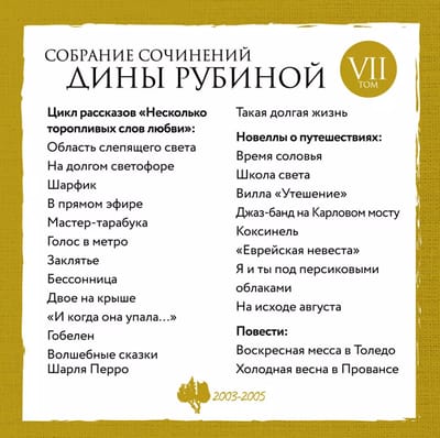 В седьмой том вошла проза, написанная Рубиной с 2003 по 2005 года: